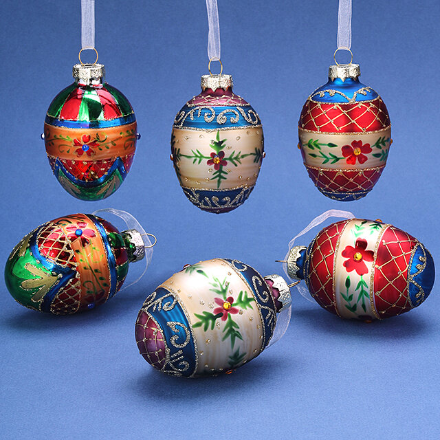 Набор стеклянных елочных игрушек Яйца - Lonate Pozzolo 8 см, 6 шт, подвеска интересное: