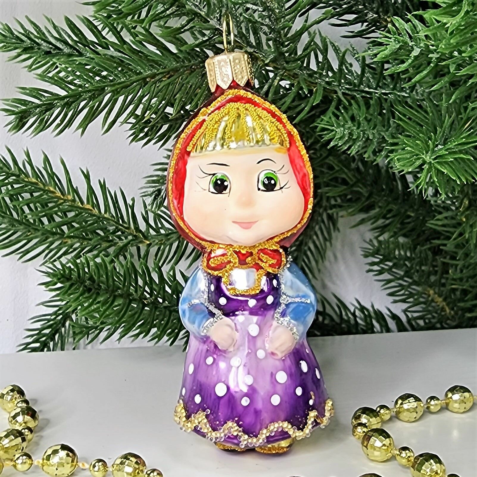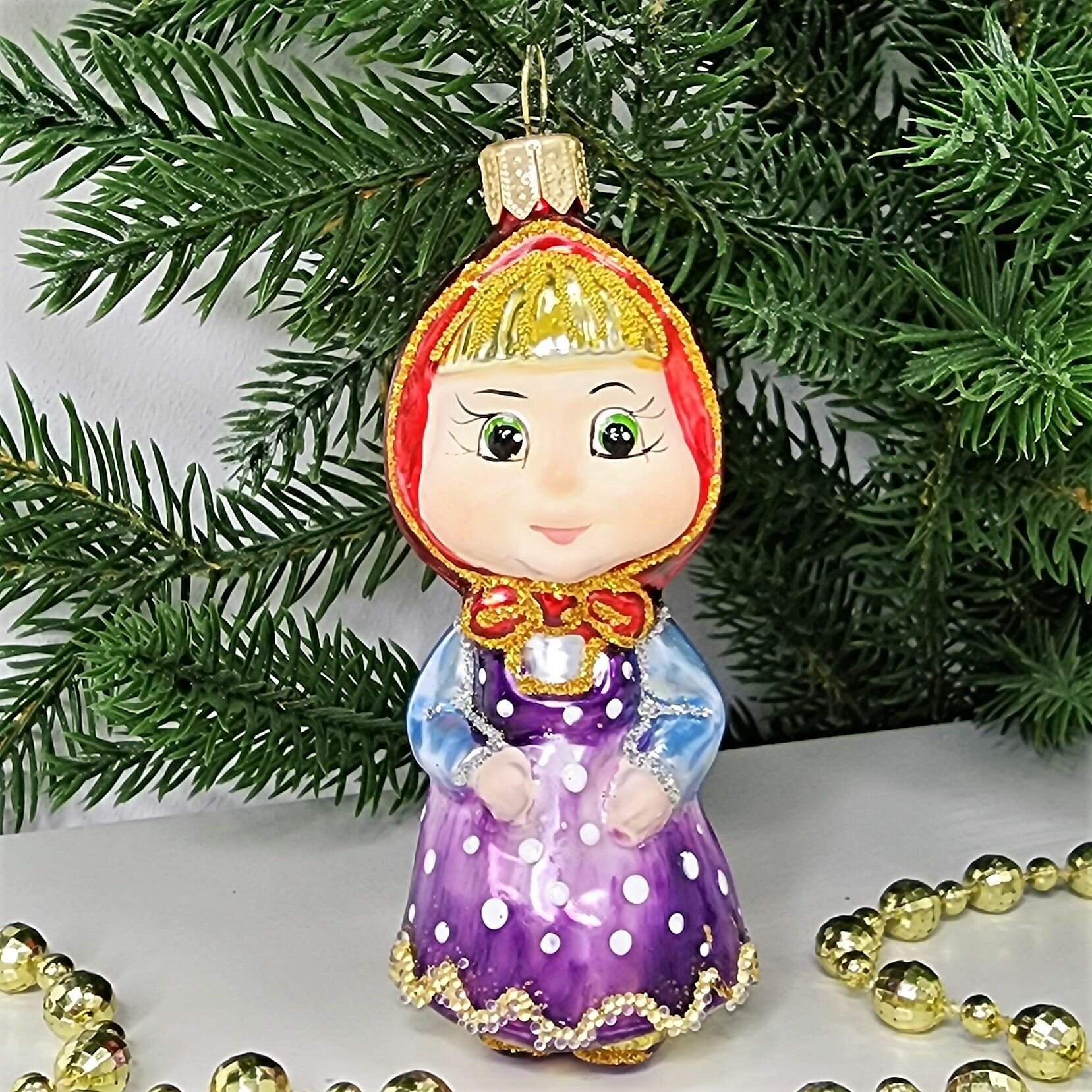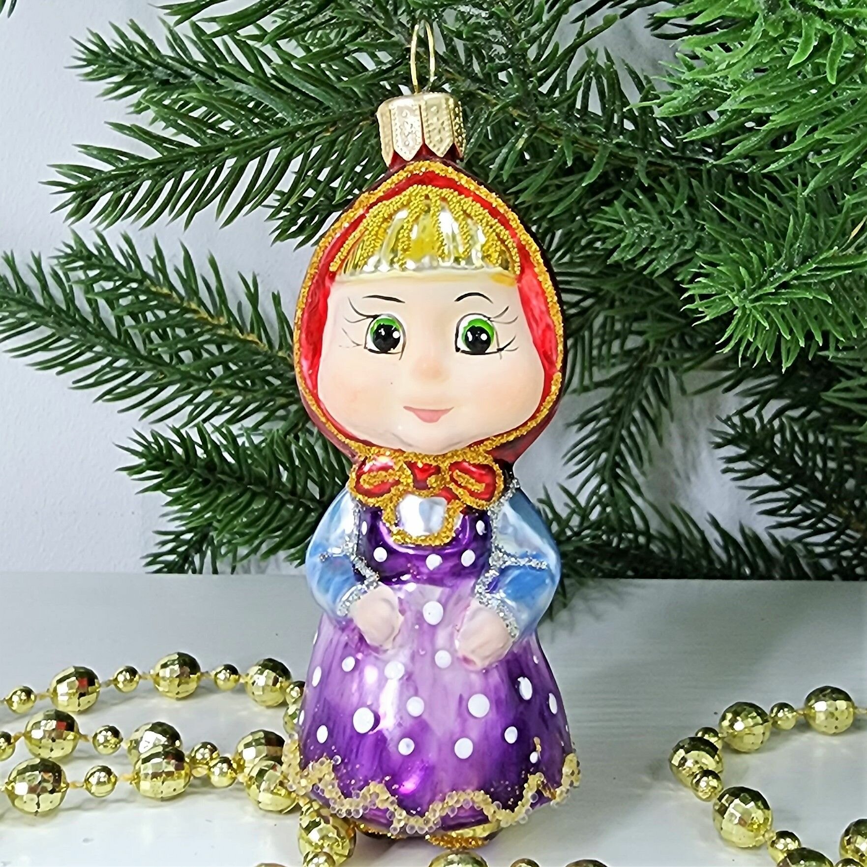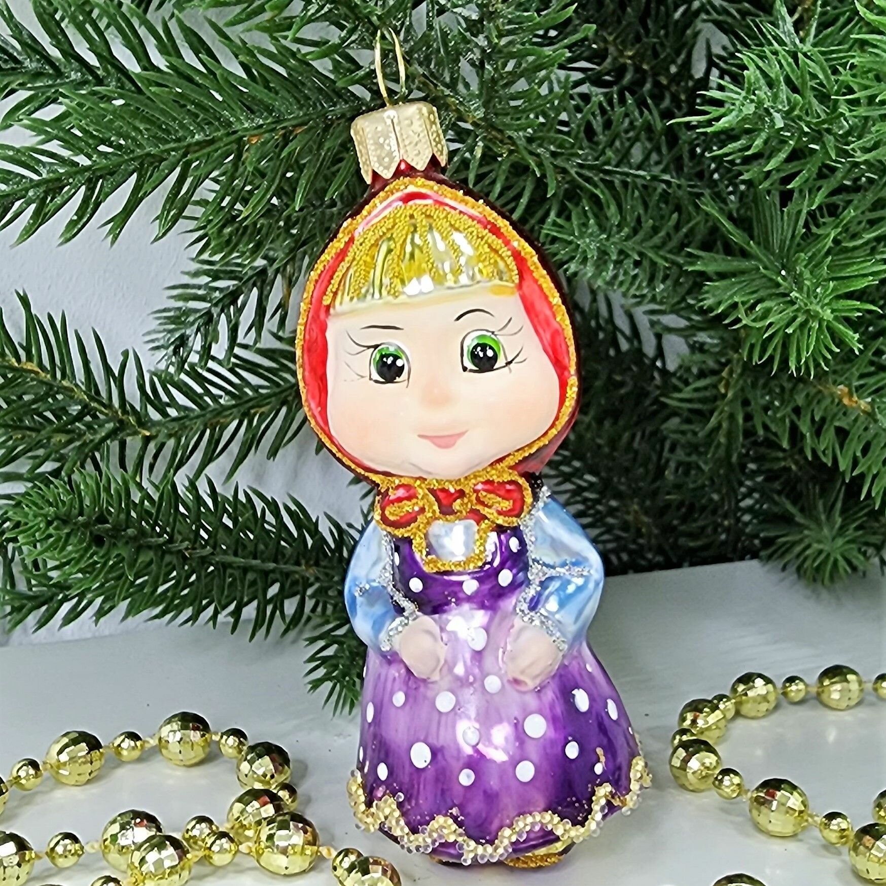 Irena-Co елочная игрушка, стекло Маша (9,5х3,5х4см) интересное: