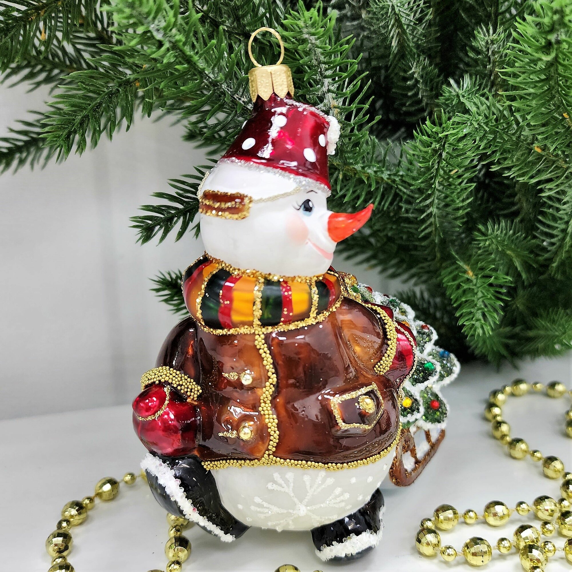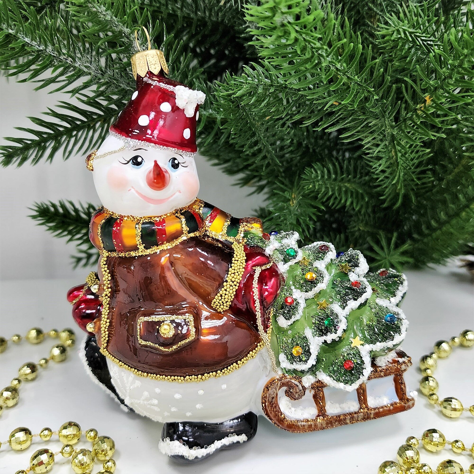 Irena-Co елочная игрушка, стекло Снеговик тянет саночки (12х11,5х6см) интересное: