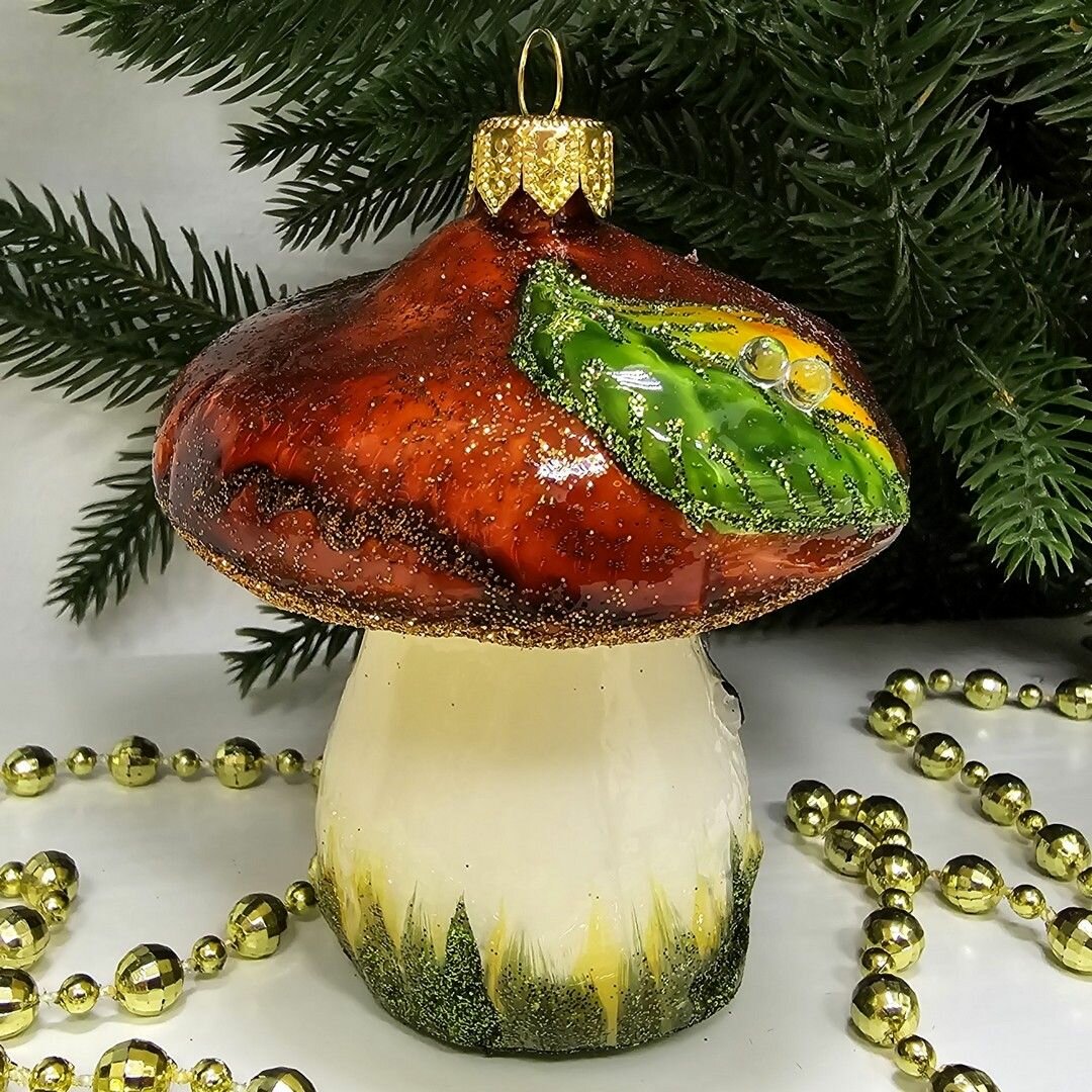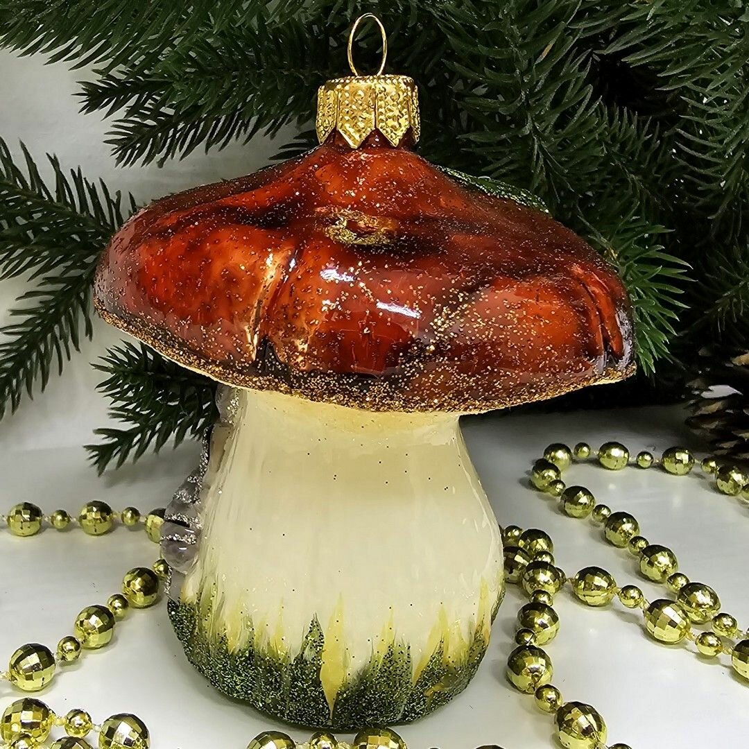 Irena-Co елочная игрушка, стекло Гриб Боровик малый (9х6х6см)