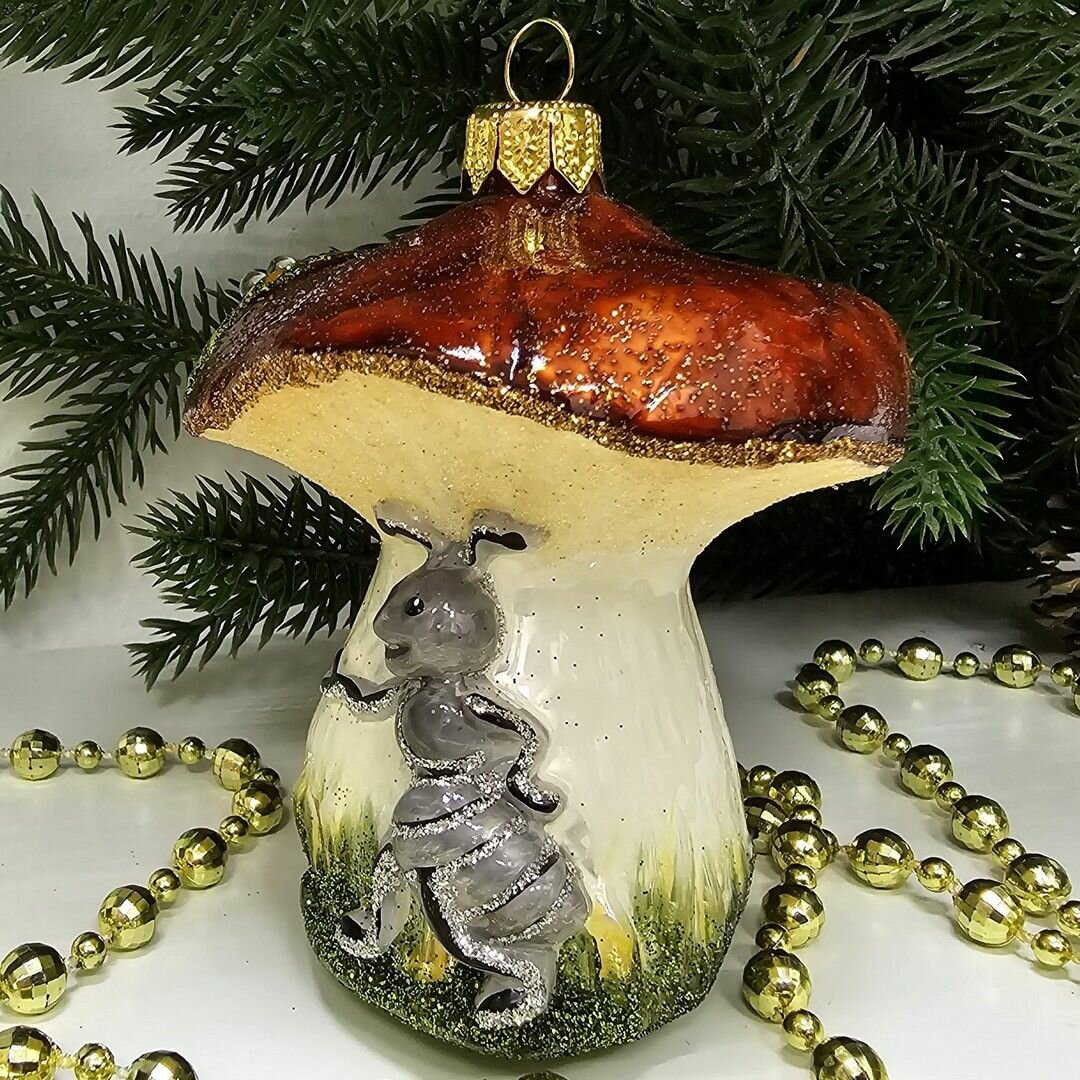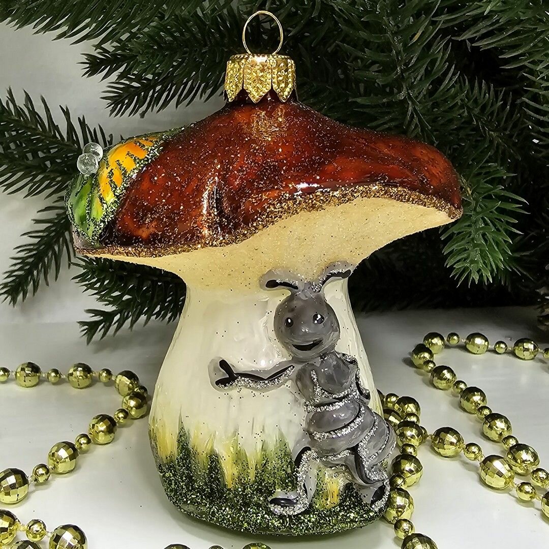 Купить Irena-Co елочная игрушка, стекло Гриб с муравьем (9х8х8см)