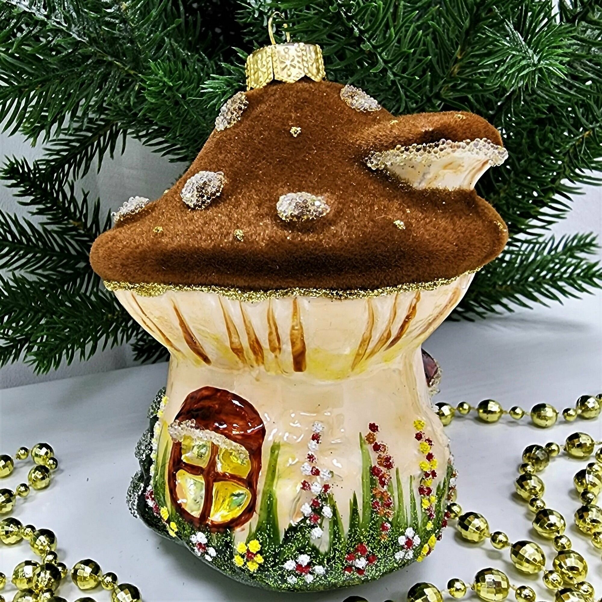 Купить Irena-Co елочная игрушка, стекло Грибок домик коричневый (11х8,5х9см)