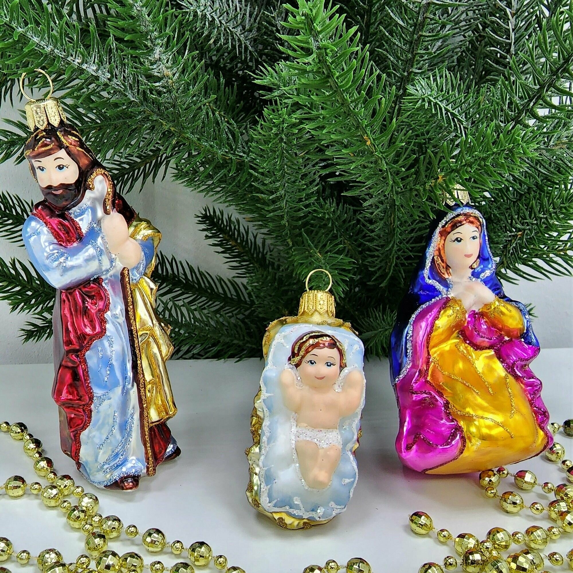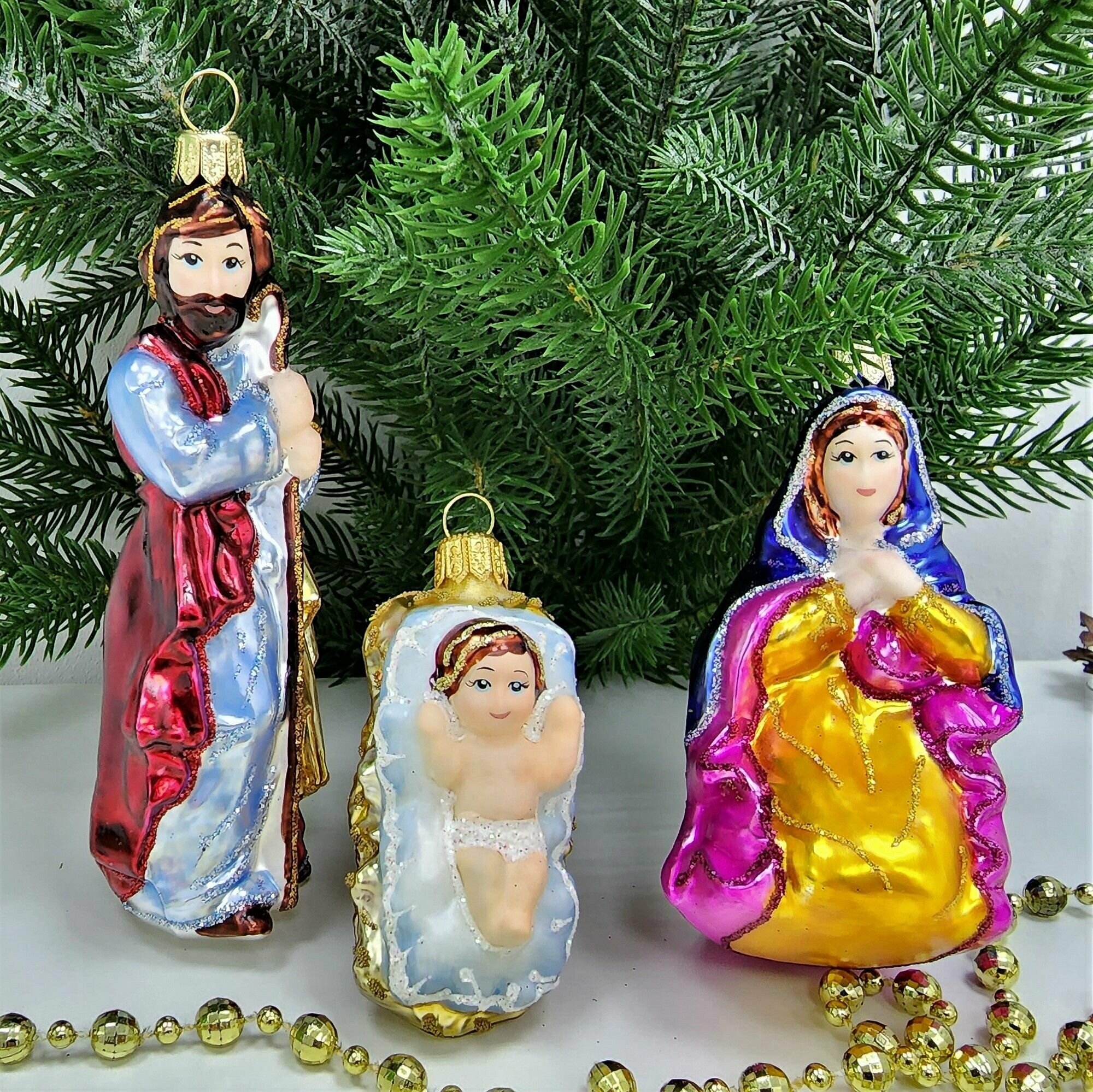 Купить Irena-Co Набор елочных игрушек, стекло Иосиф - 12,5х5х4, Мария - 9х5,5х4, Иисус - 8х3,5х4