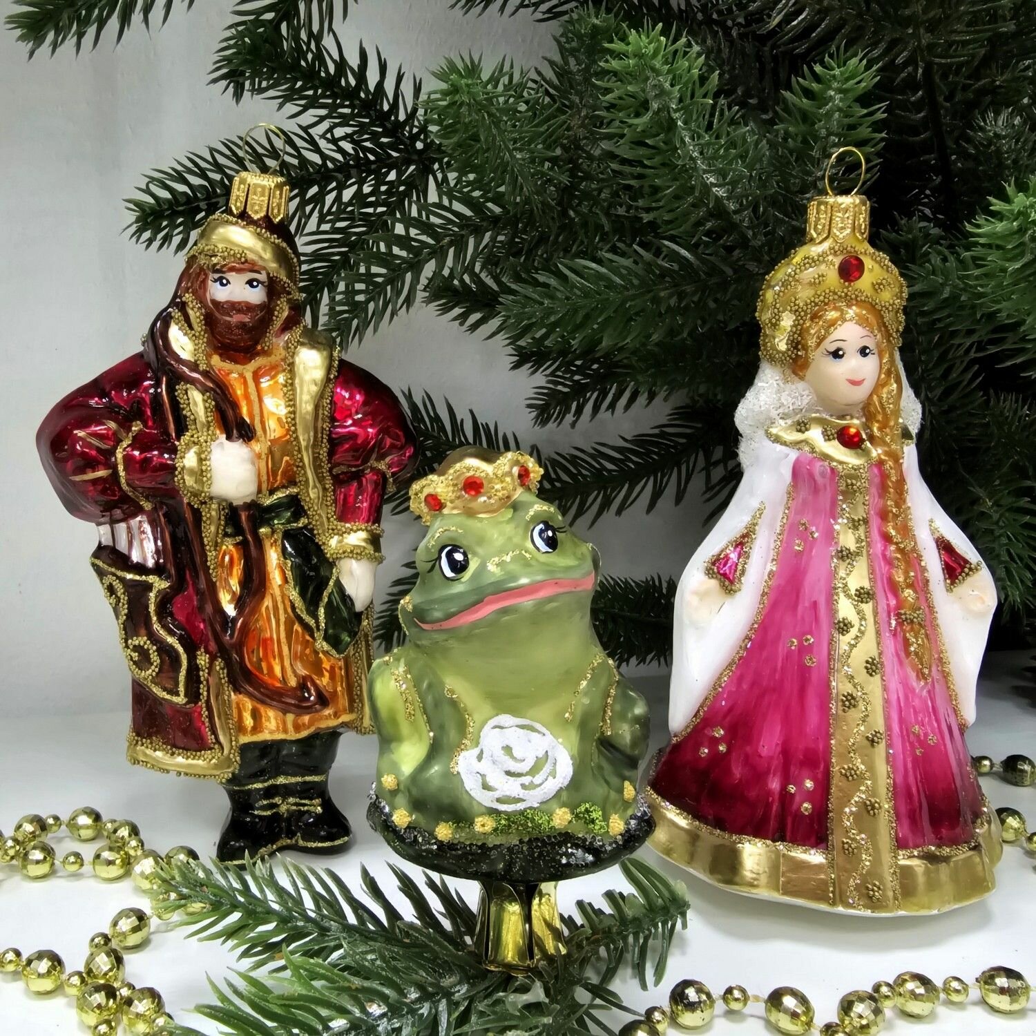 Купить Irena-Co Набор елочных игрушек, стекло Царевна - 13х7х6, Царевич - 13,5х8х4, Лягушка - 8х4х5