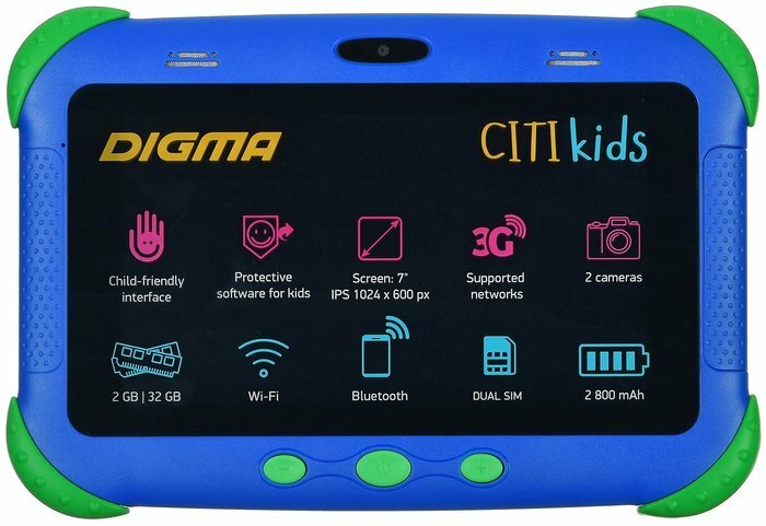 Купить Детский планшет DIGMA CITI Kids, 2GB, 32GB, 3G, Android 9.0 синий [cs7216mg]