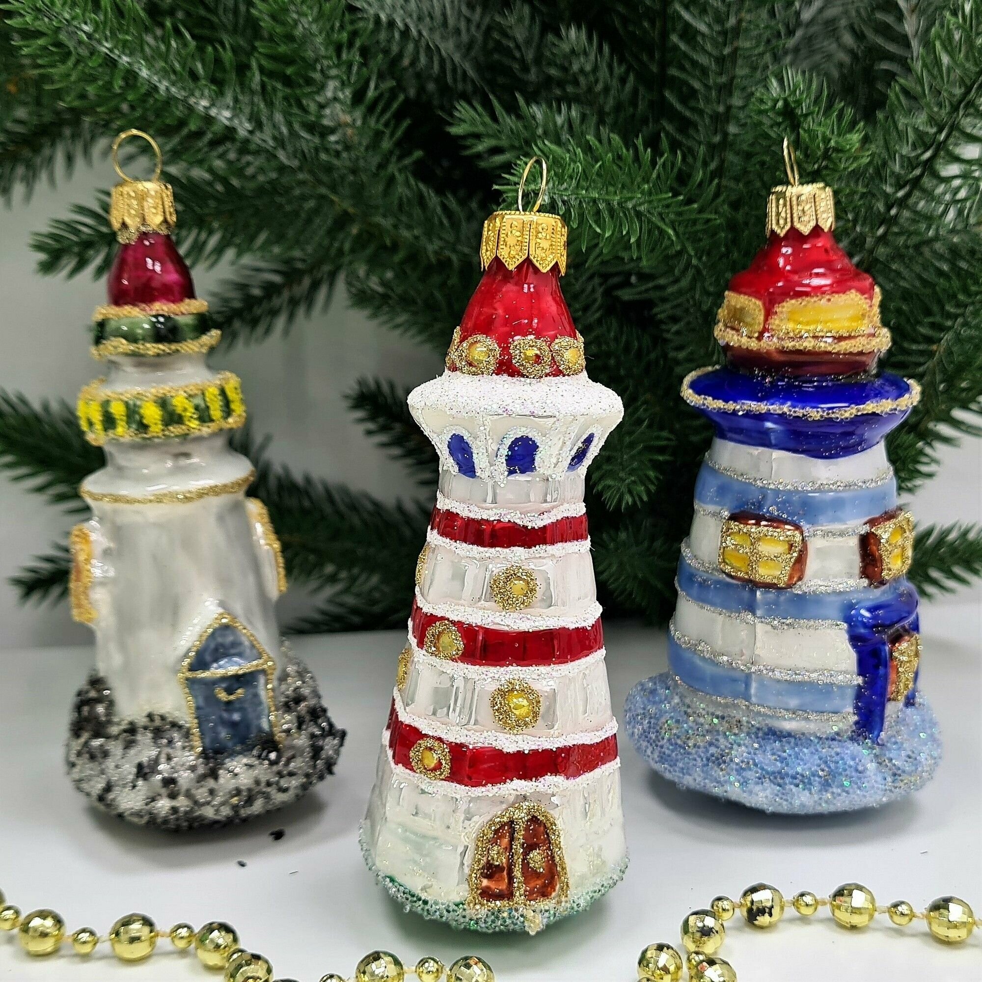 Купить Irena-Co Набор елочных игрушек, стекло Маяк 1 - 11,5х6х5,5, Маяк 2 - 12х5х5, Маяк 3 - 11х5х5