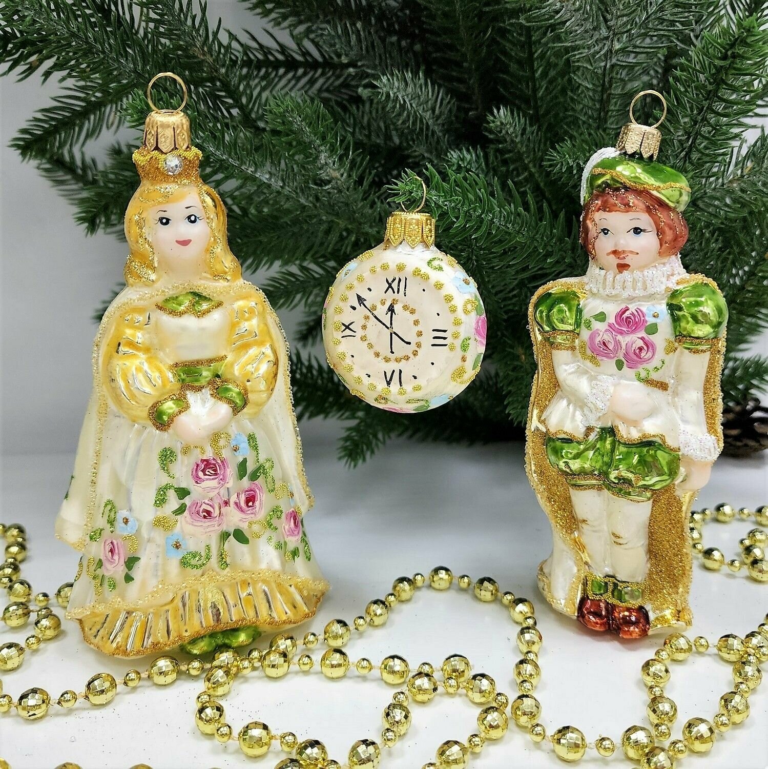 Купить Irena-Co Набор елочных игрушек, стекло Принцесса - 13х6,5х6, Принц - 13,5х5,5х4, Часики - 4,5х2,5х4,5