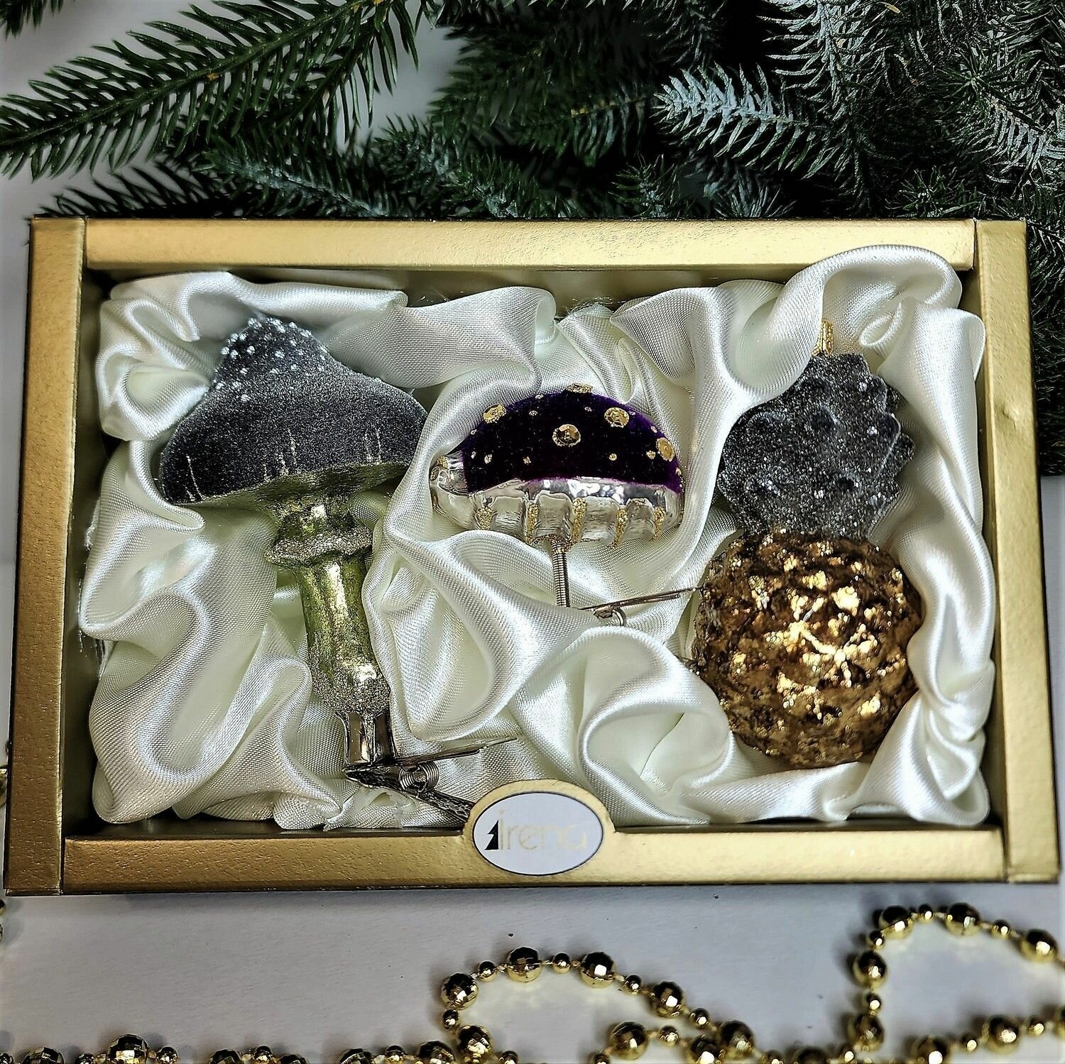 Irena-Co Набор елочных игрушек, стекло Гриб 1 - 10,5х6х6, Гриб 2 - 8,5х6х5,5, Гриб 3 - 10,5х6х6