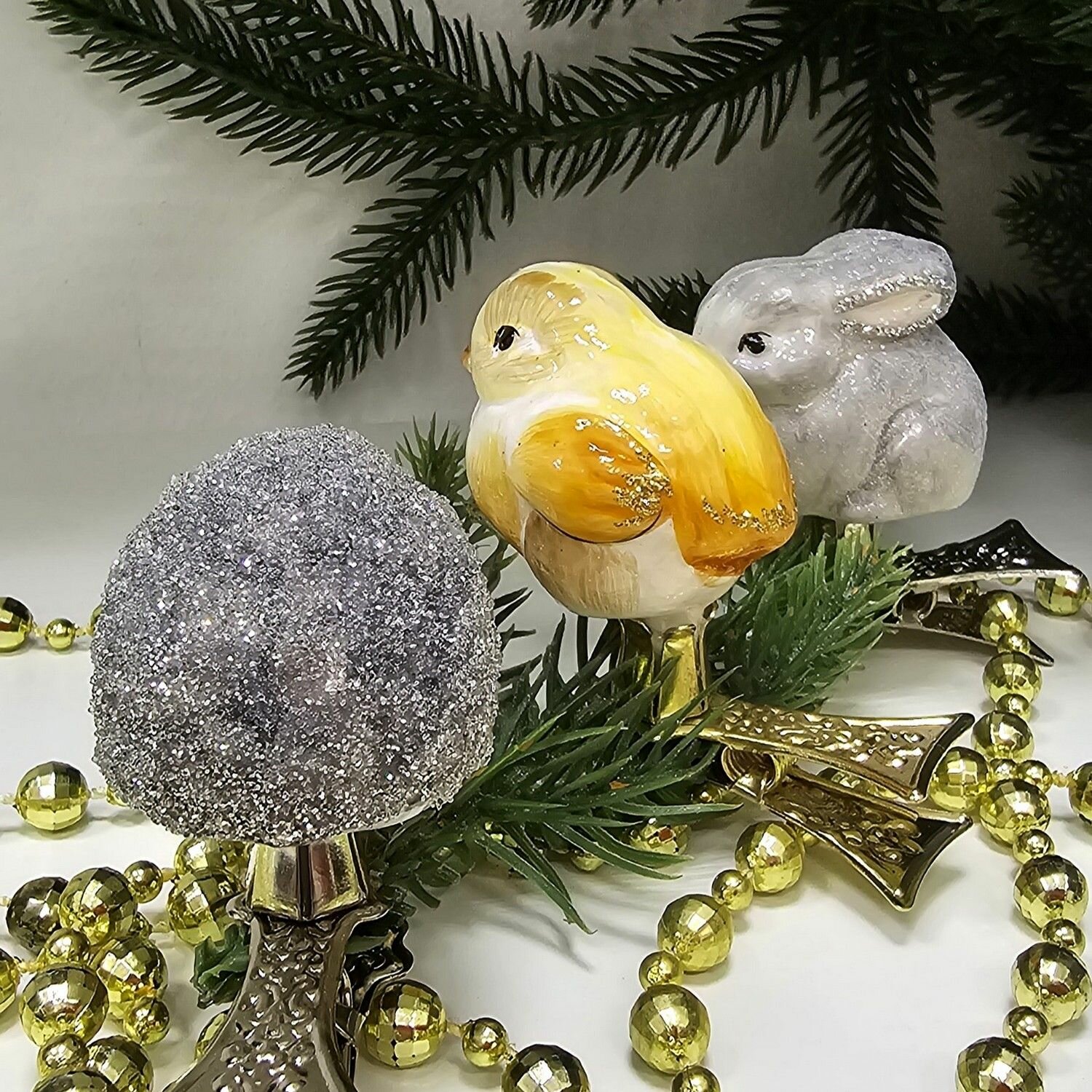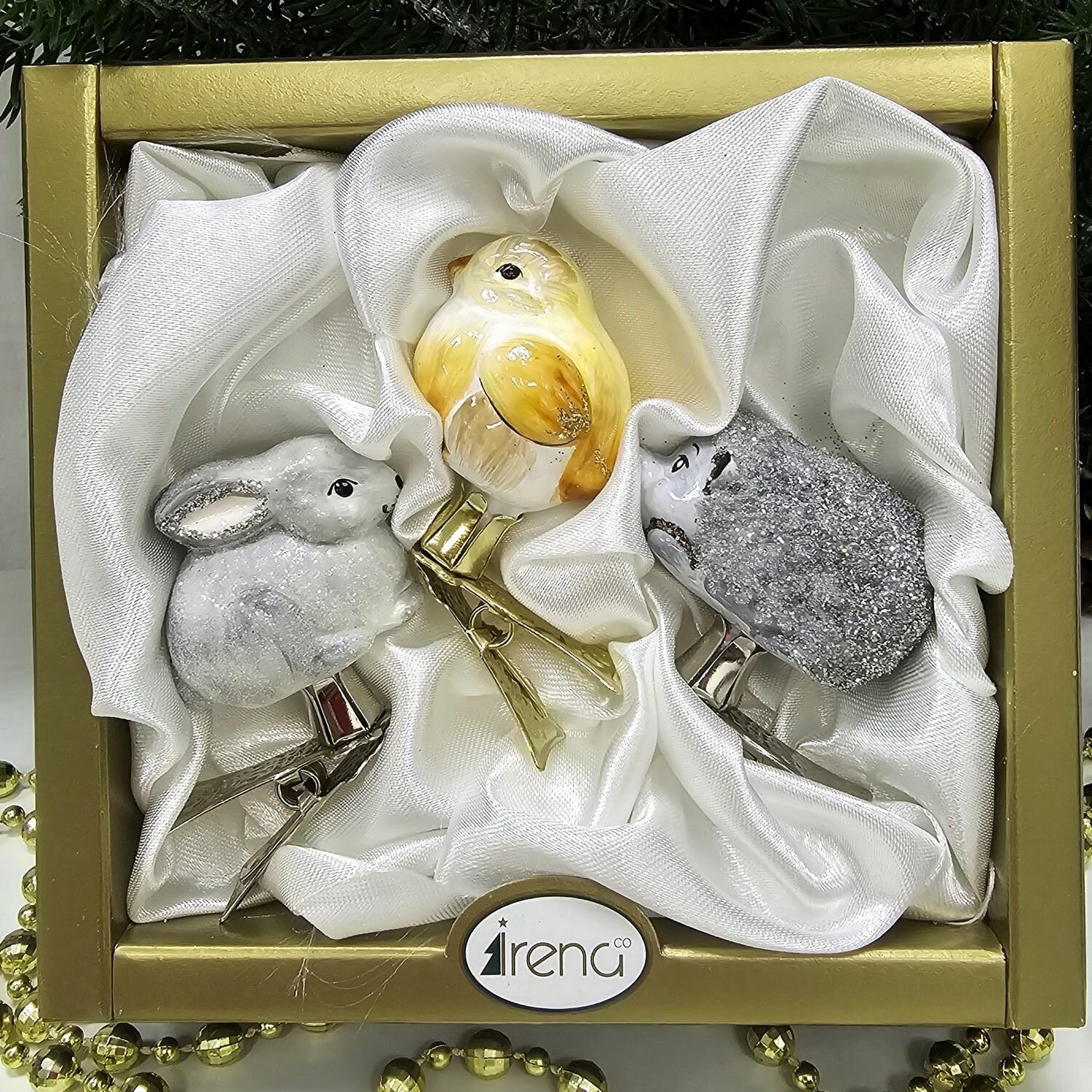 Купить Irena-Co Набор елочных игрушек, стекло Зайчик - 3х4,5х3см, Ёжик - 5х3х3,5см, Цыпленок - 3,5х4х3см