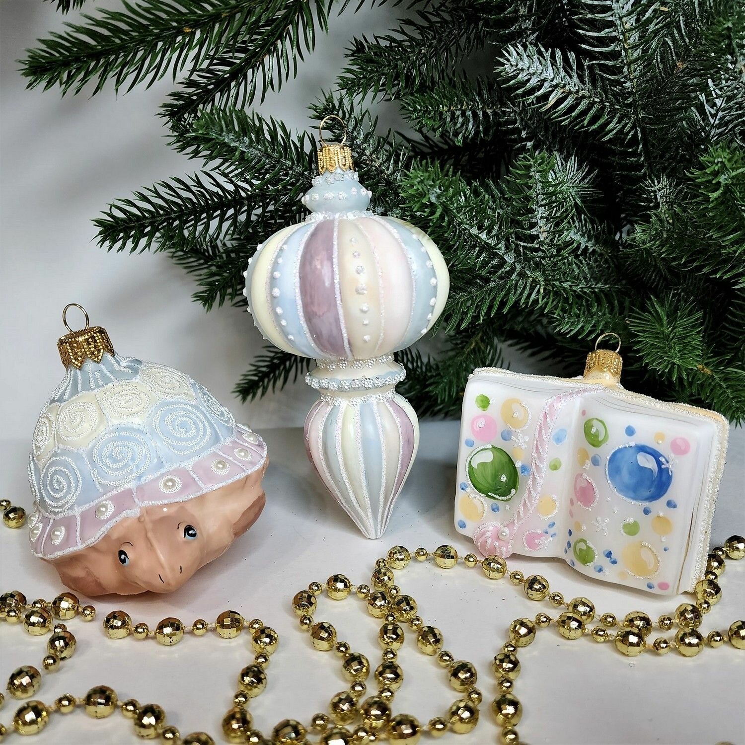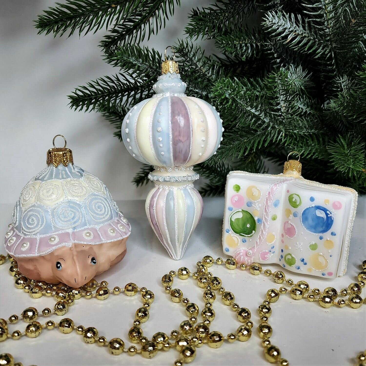 Купить Irena-Co Набор елочных игрушек, стекло Черепаха - 7х9,5х8см, Подвеска - 12х6,5х6,5см, Книга - 6х8х3см