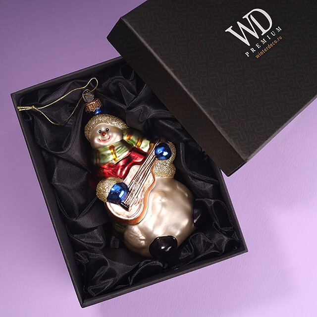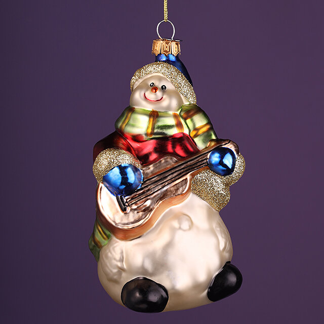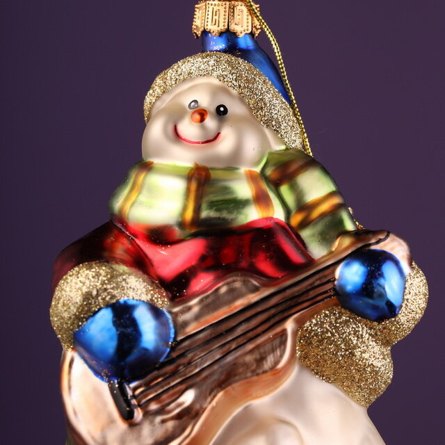 Купить Стеклянная елочная игрушка Снеговик Музыкант 14 см, подвеска