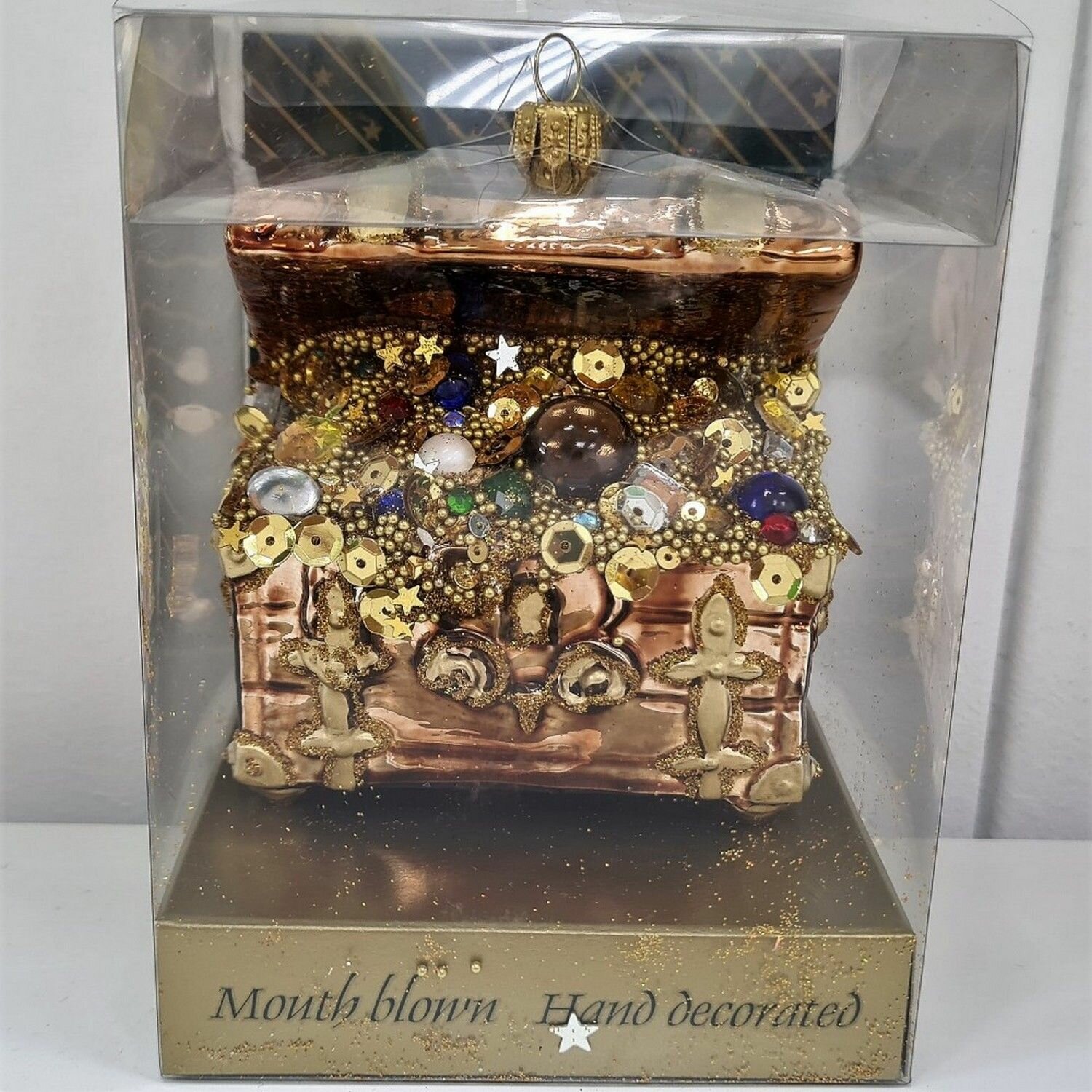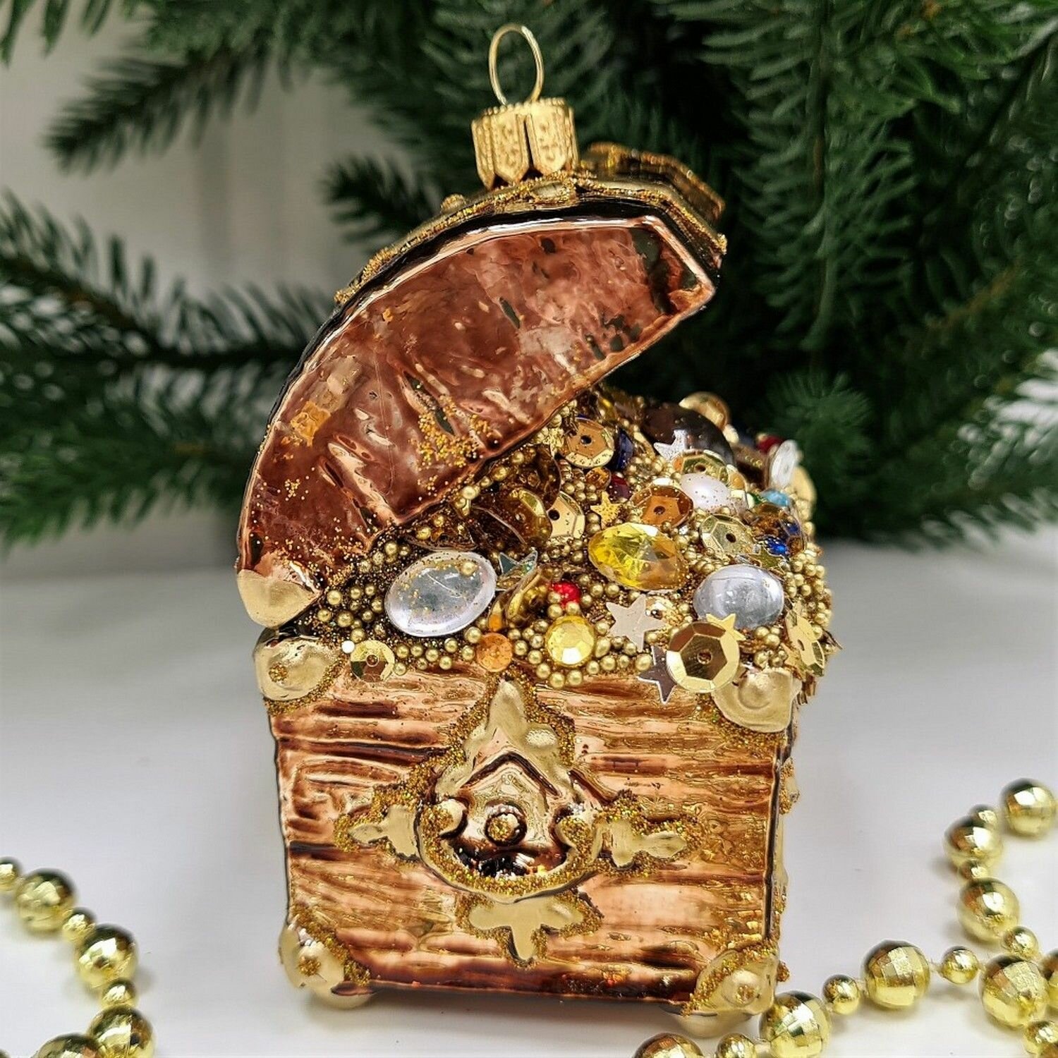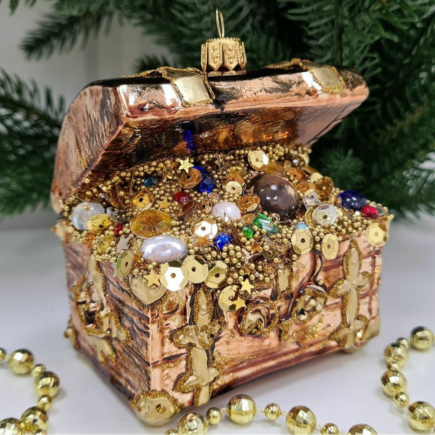 Купить Irena-Co елочная игрушка, стекло Сундук с золотом коричневый (10х8,5х5,5см)