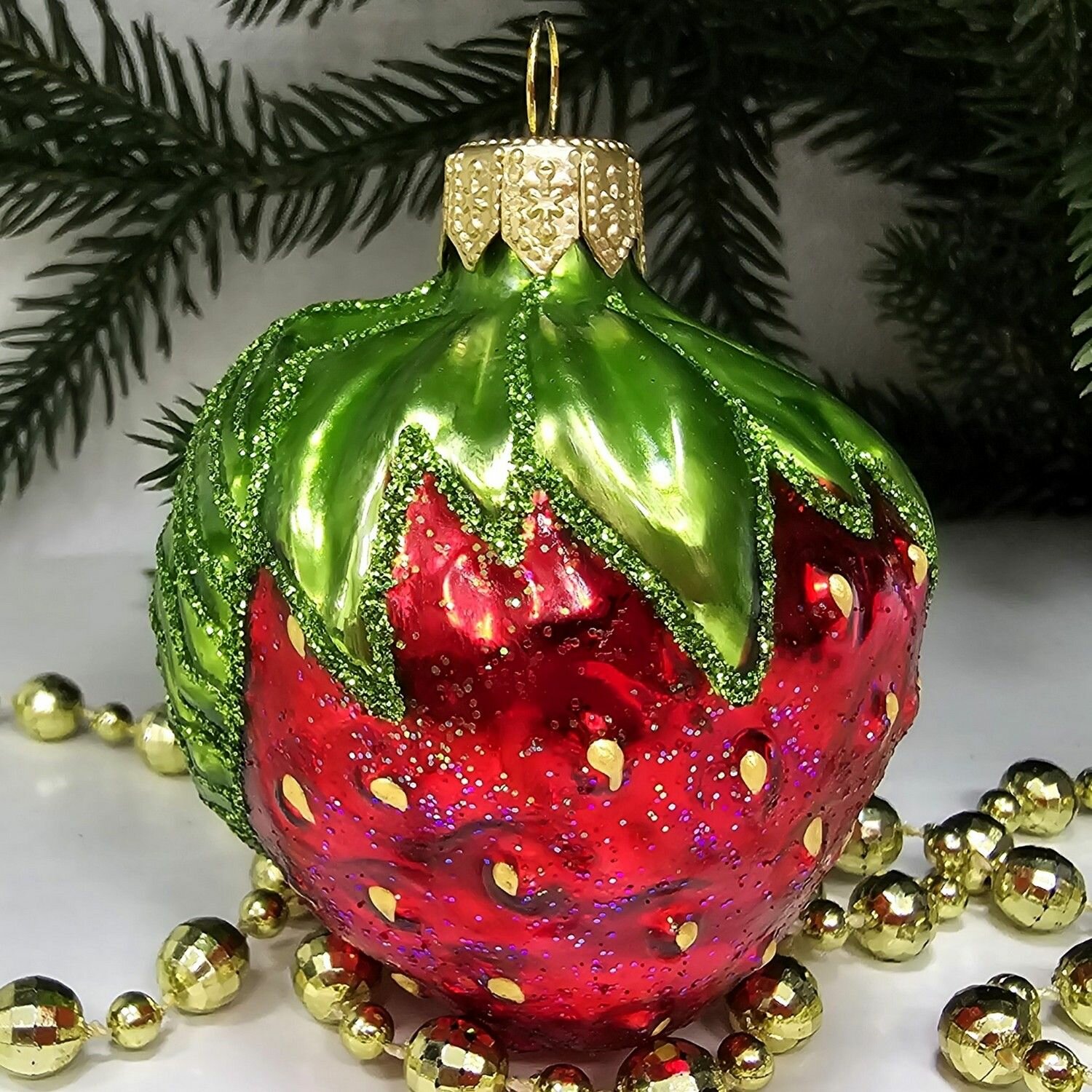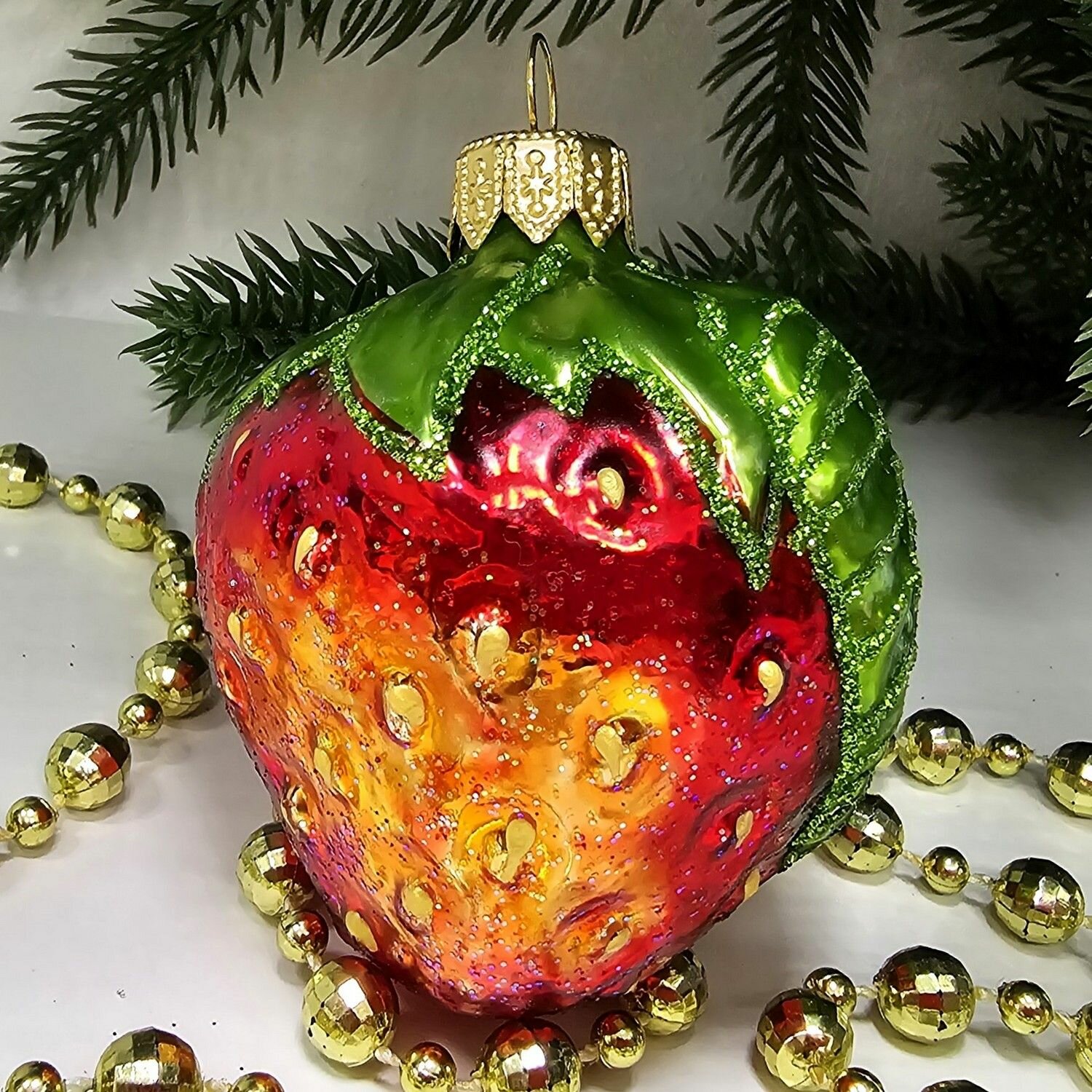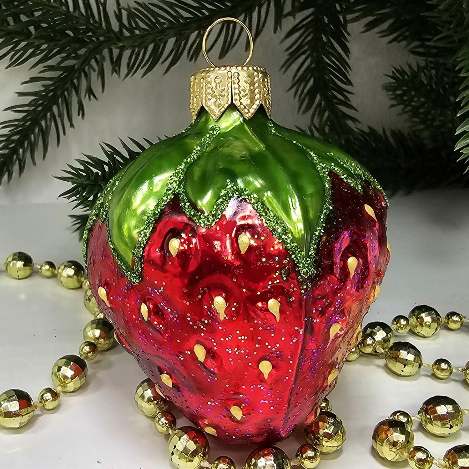 Irena-Co елочная игрушка, стекло Клубника (7,5х5,5х5,5см) интересное: