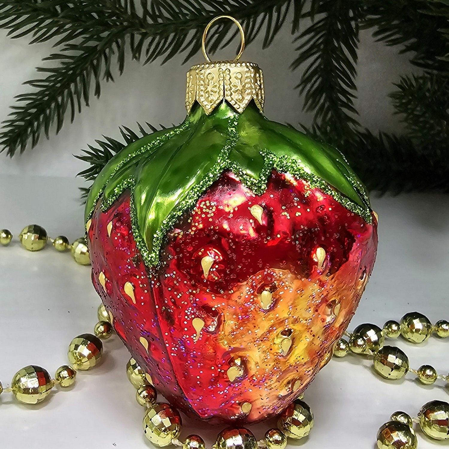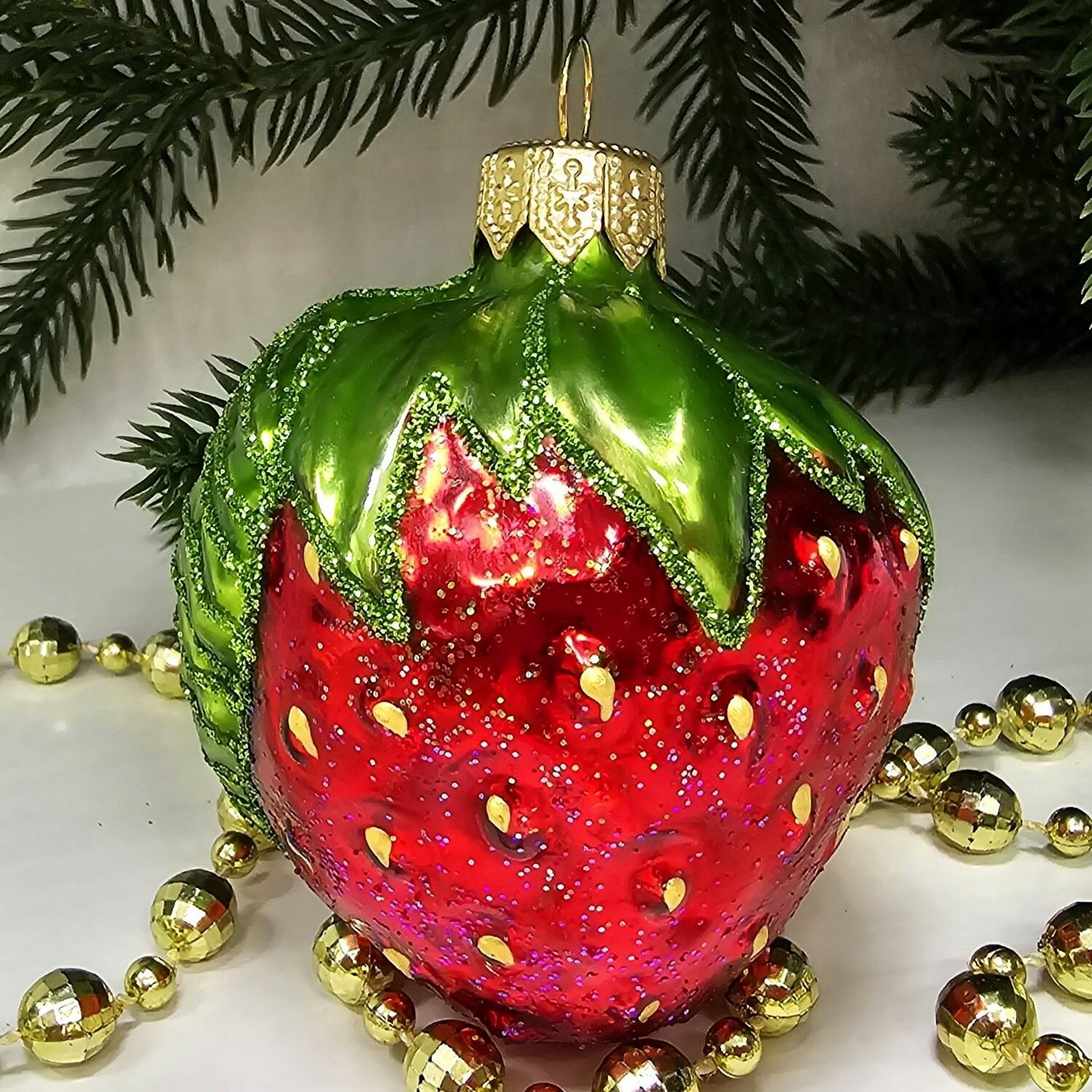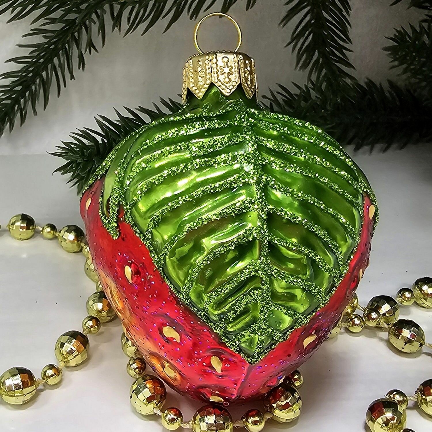 Irena-Co елочная игрушка, стекло Клубника (7,5х5,5х5,5см) интересное: