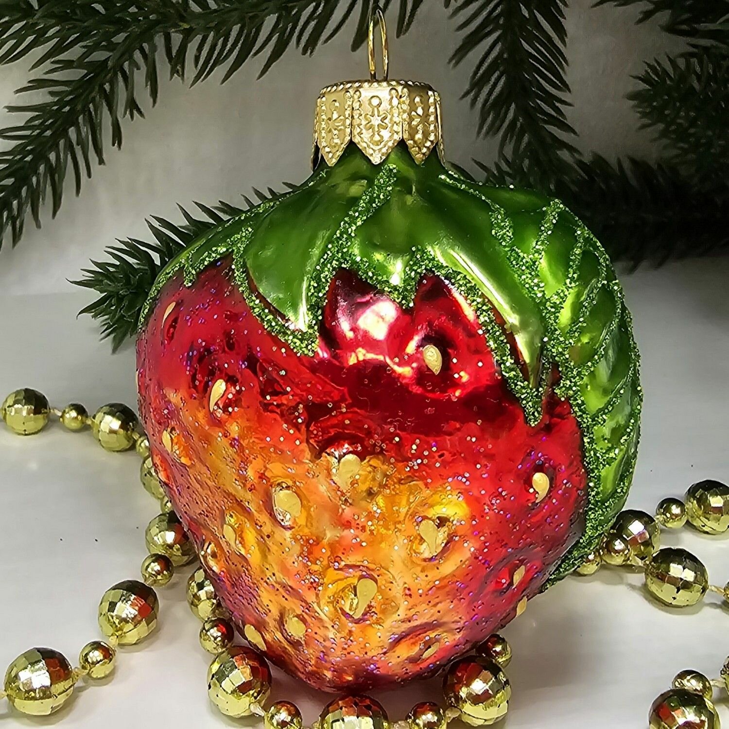 Купить Irena-Co елочная игрушка, стекло Клубника (7,5х5,5х5,5см)