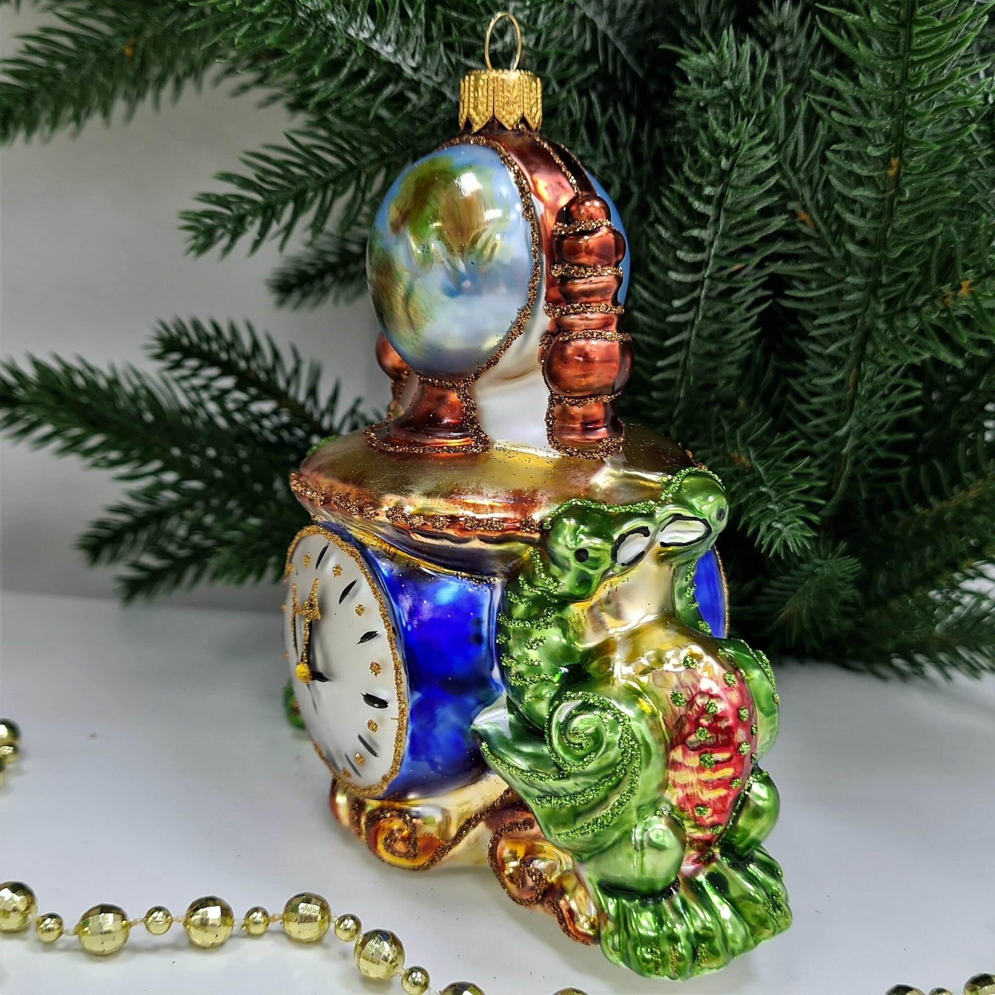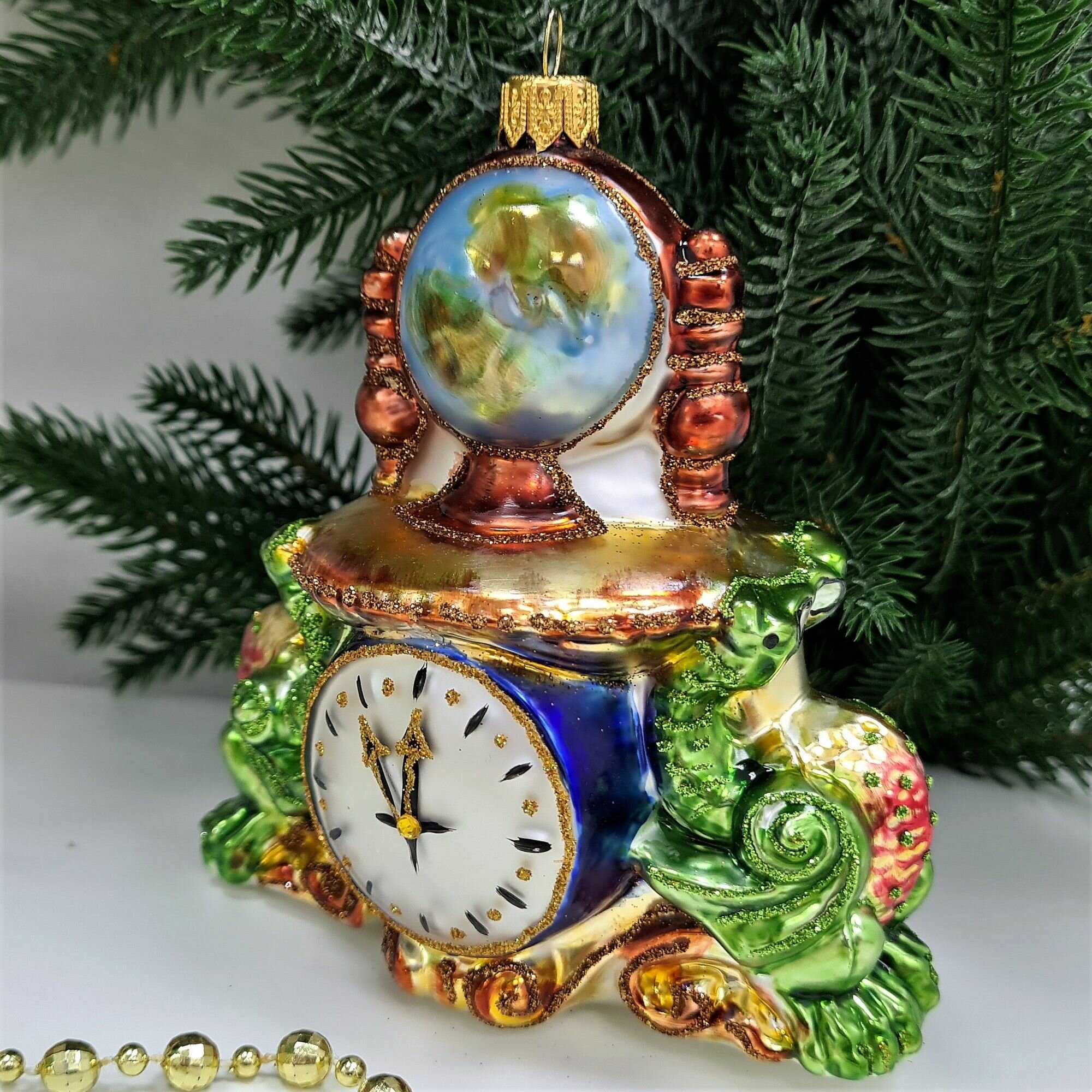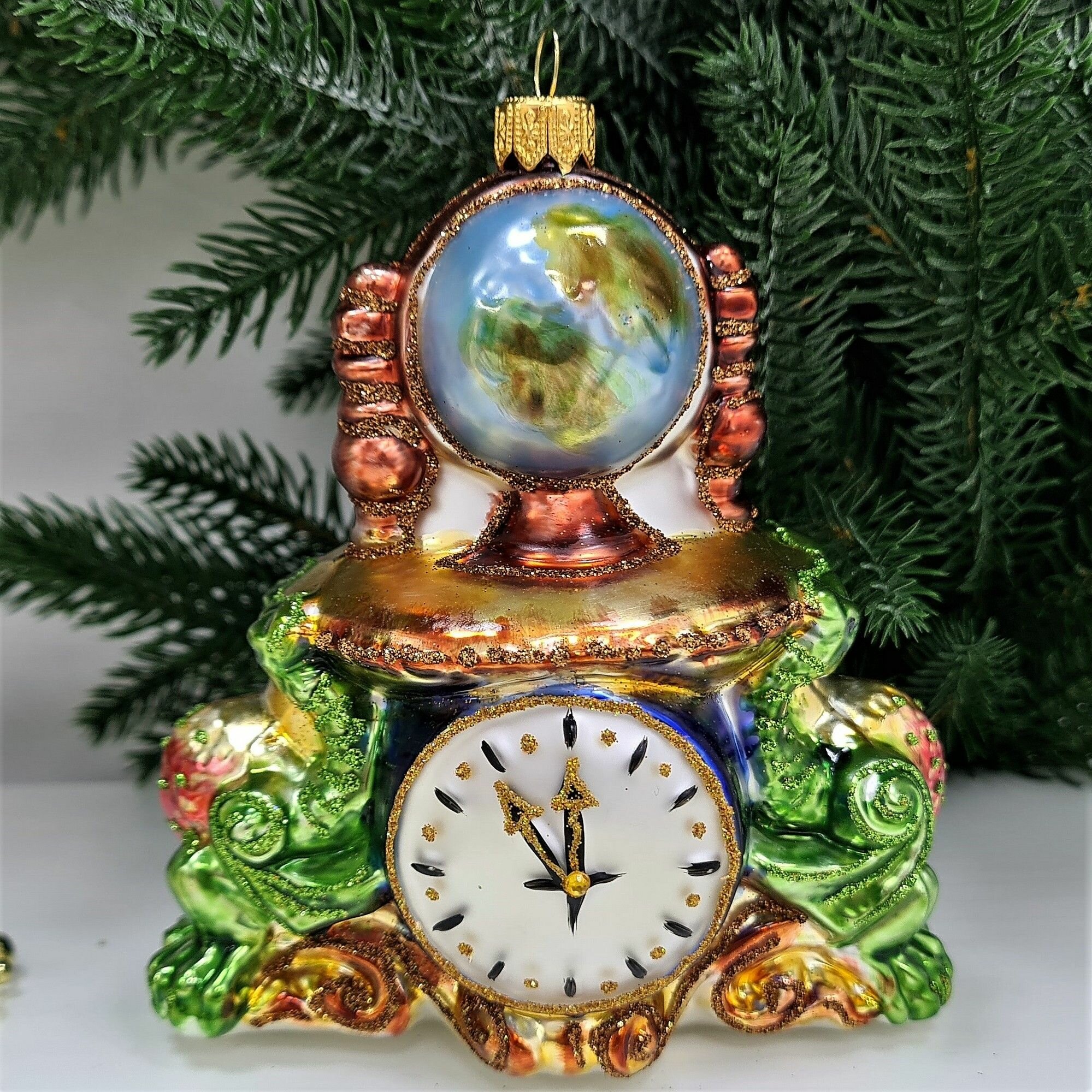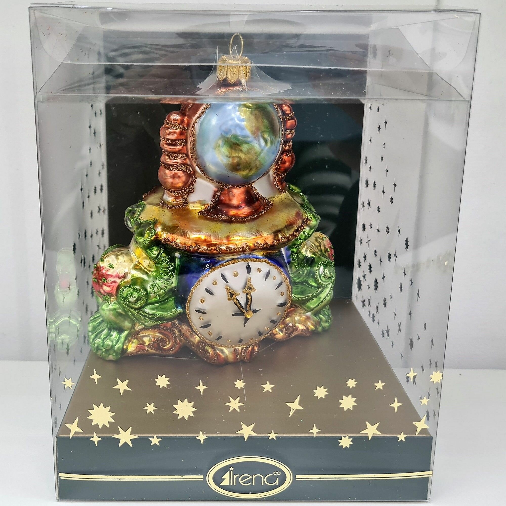 Irena-Co елочная игрушка, стекло Часы с глобусом Версаль (12,5х12х7,5см)