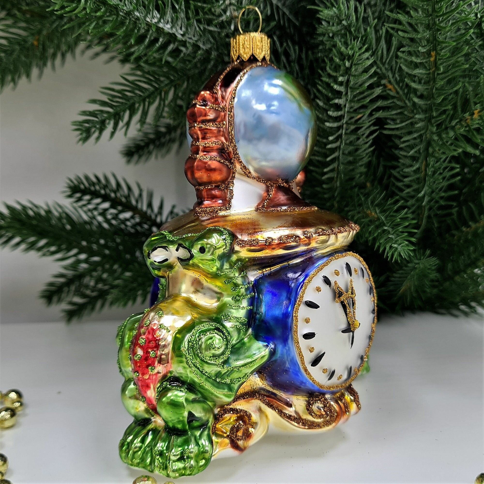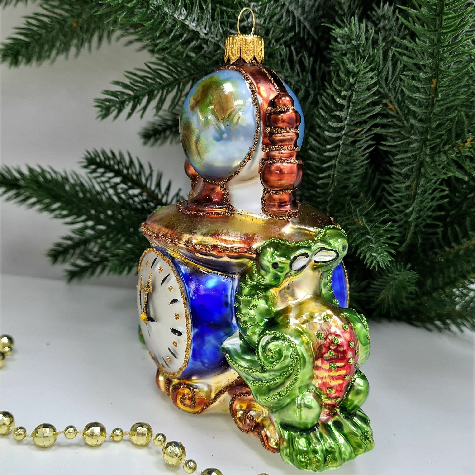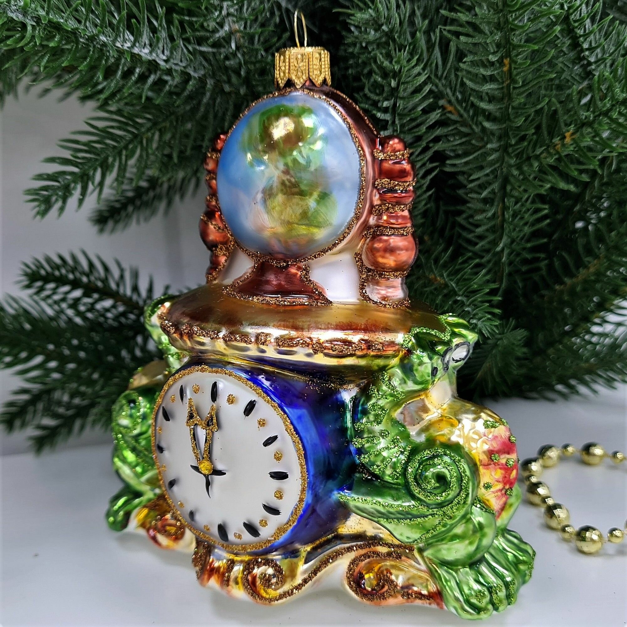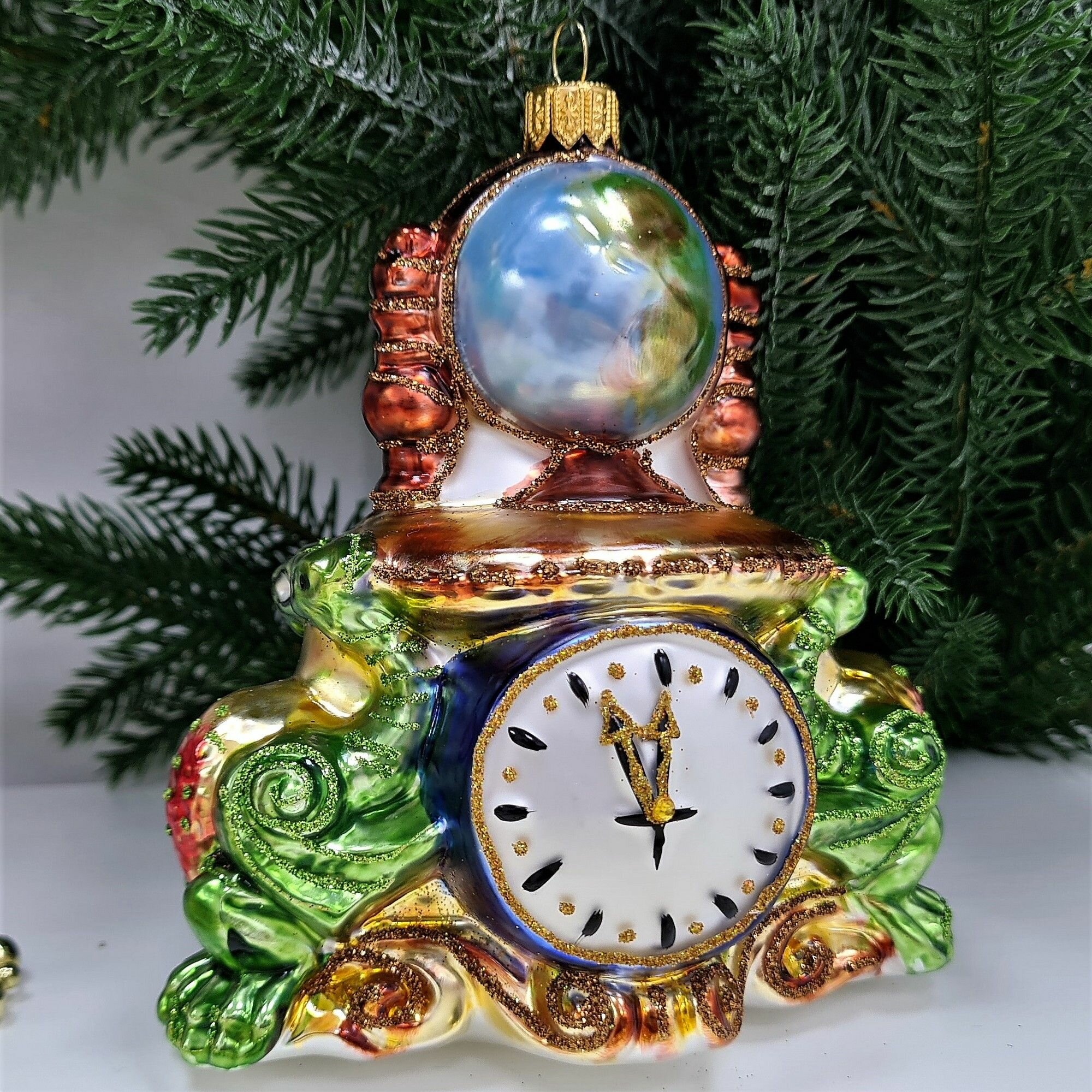 Irena-Co елочная игрушка, стекло Часы с глобусом Версаль (12,5х12х7,5см)
