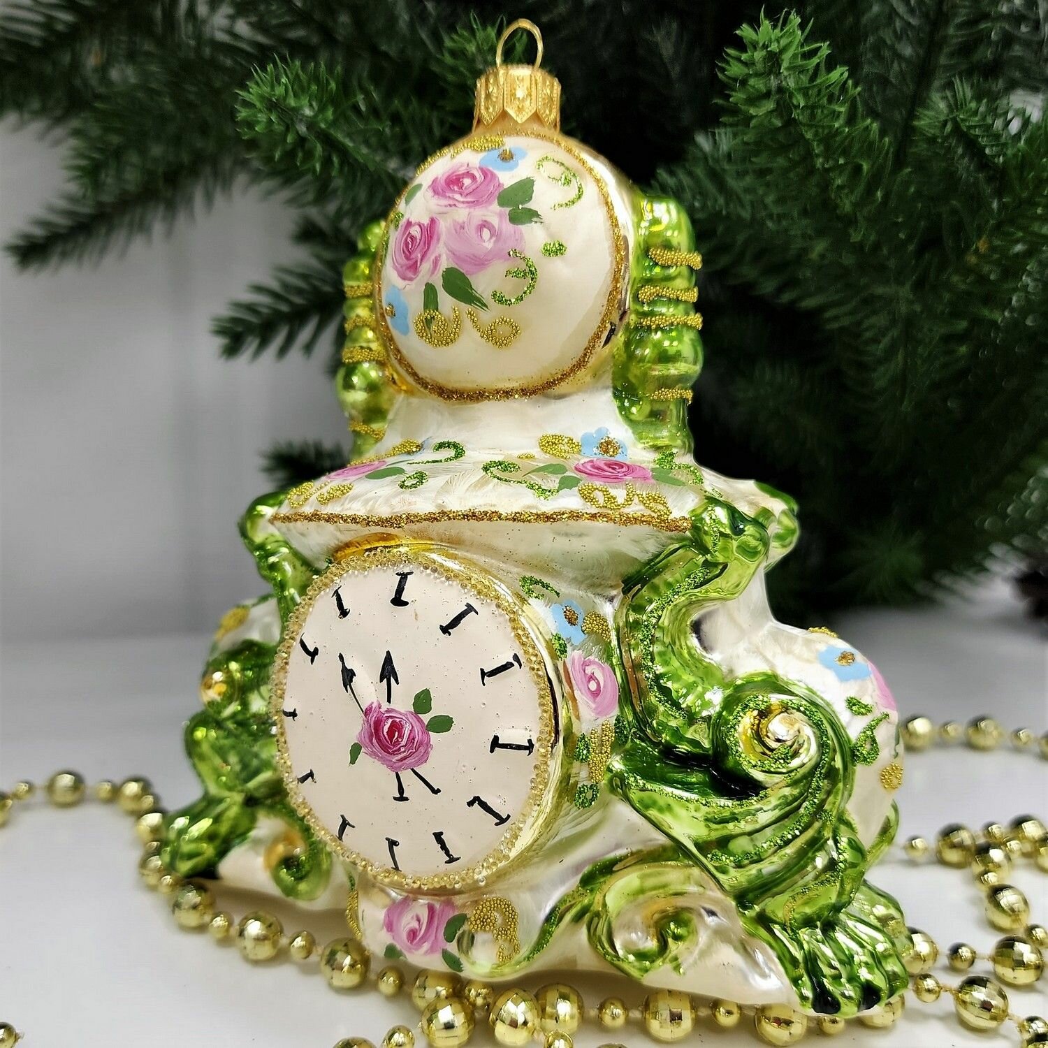 Irena-Co елочная игрушка, стекло Часы каминные (8,5х12х7см)