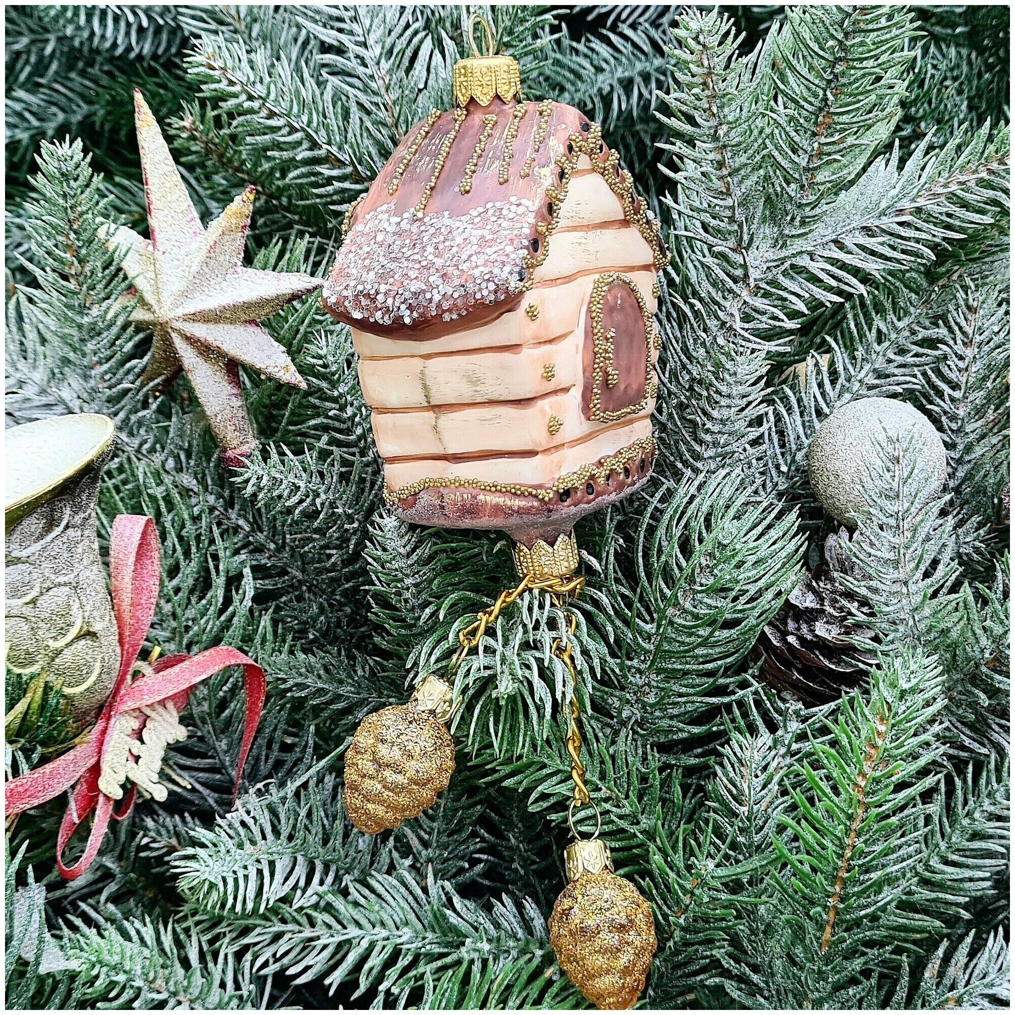 Irena-Co елочная игрушка, стекло Часы с кукушкой Версаль (10х7х5см (с шишками - 21х7х5 см))