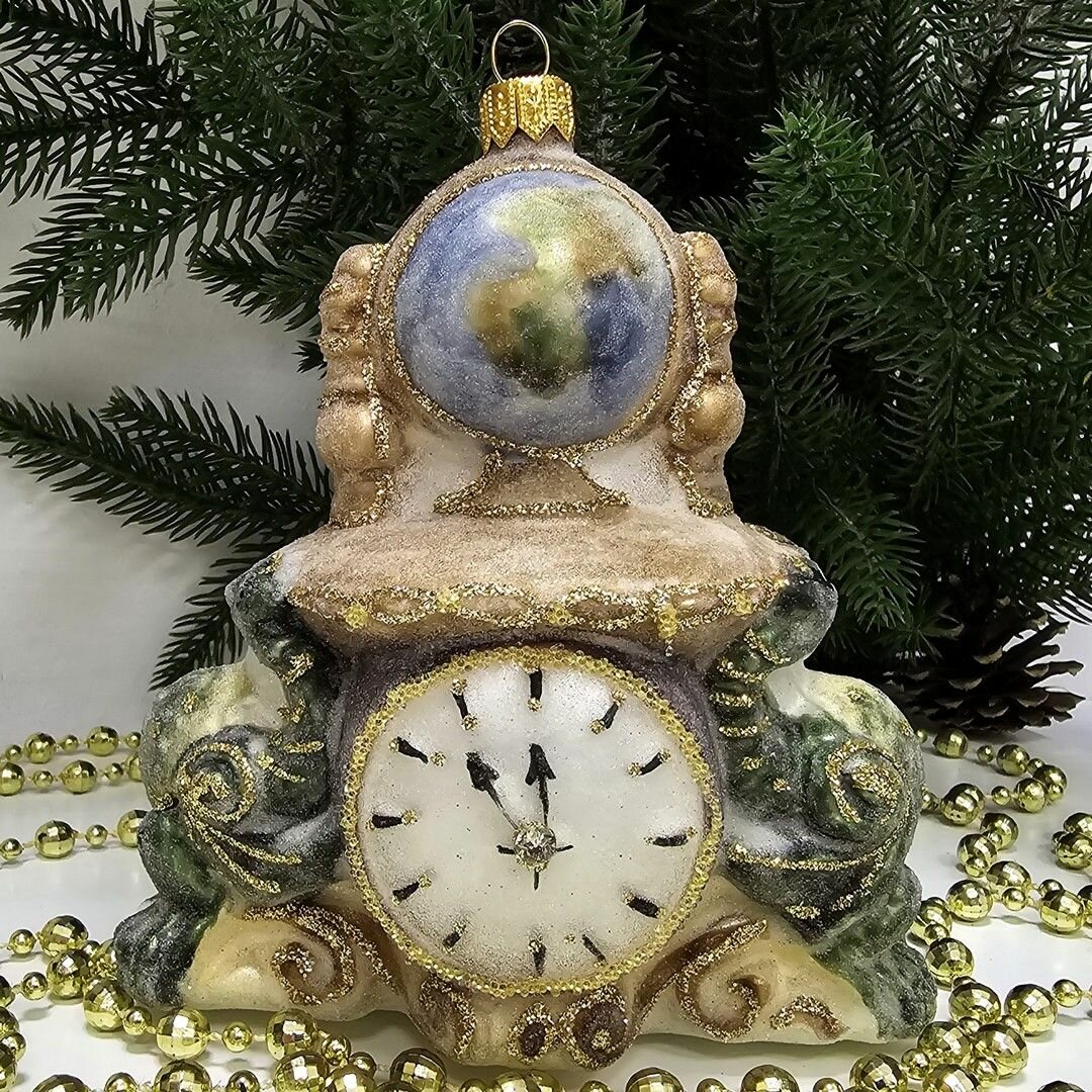 Купить Irena-Co елочная игрушка, стекло Часы с глобусом сахар (12,5х12х7,5см)