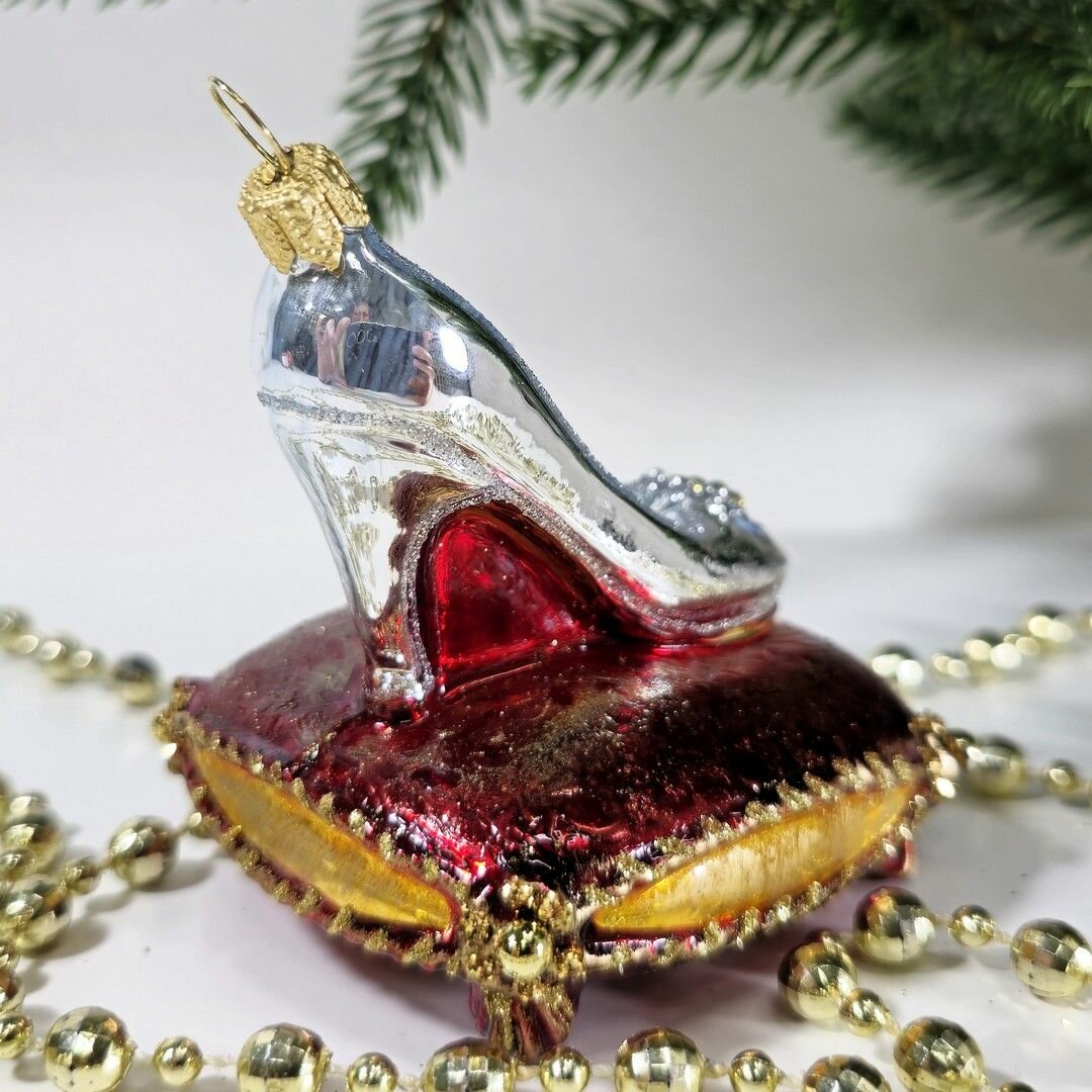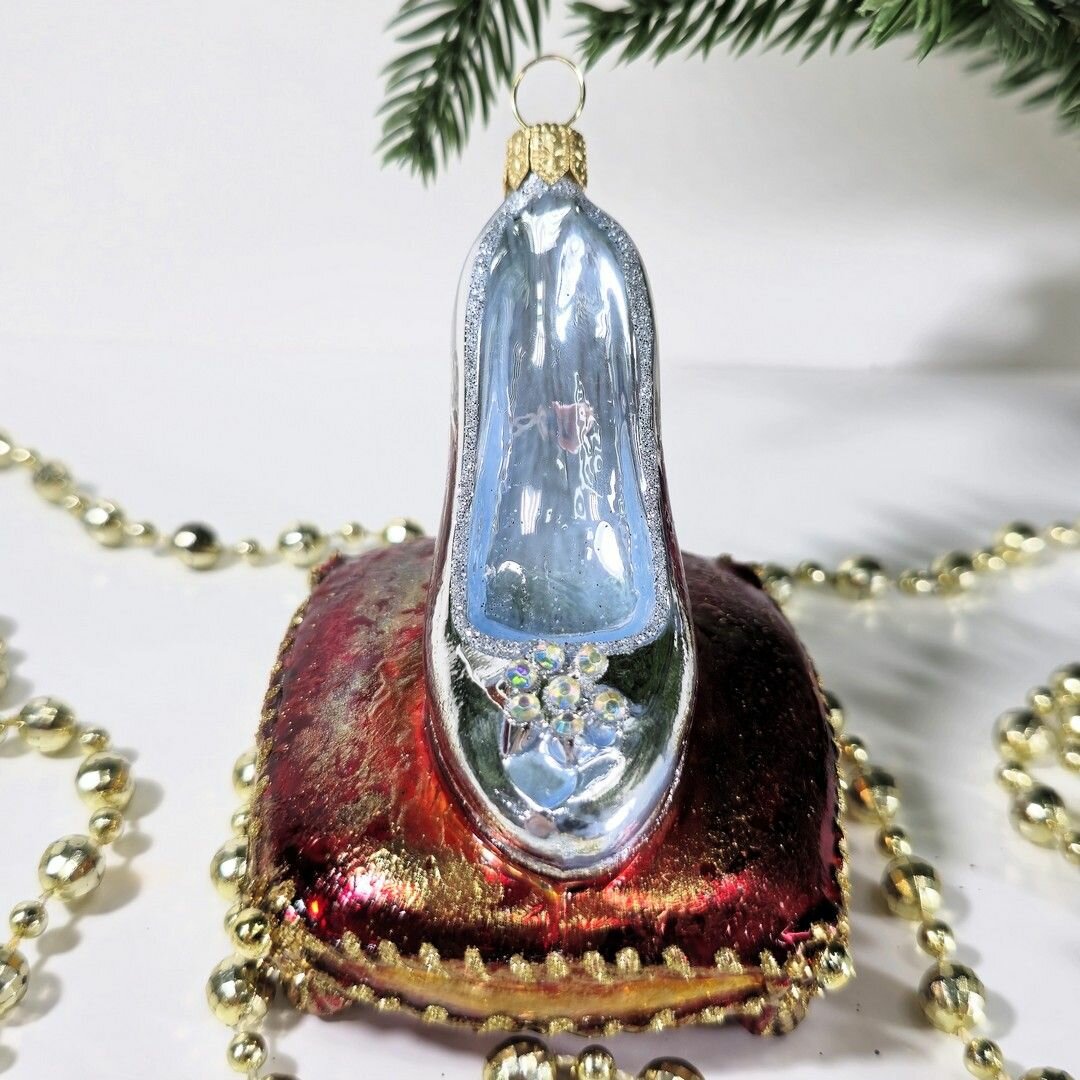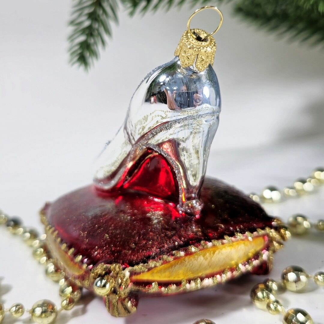 Купить Irena-Co елочная игрушка, стекло Туфелька Золушки на подушке (7,5х6,5х7см)