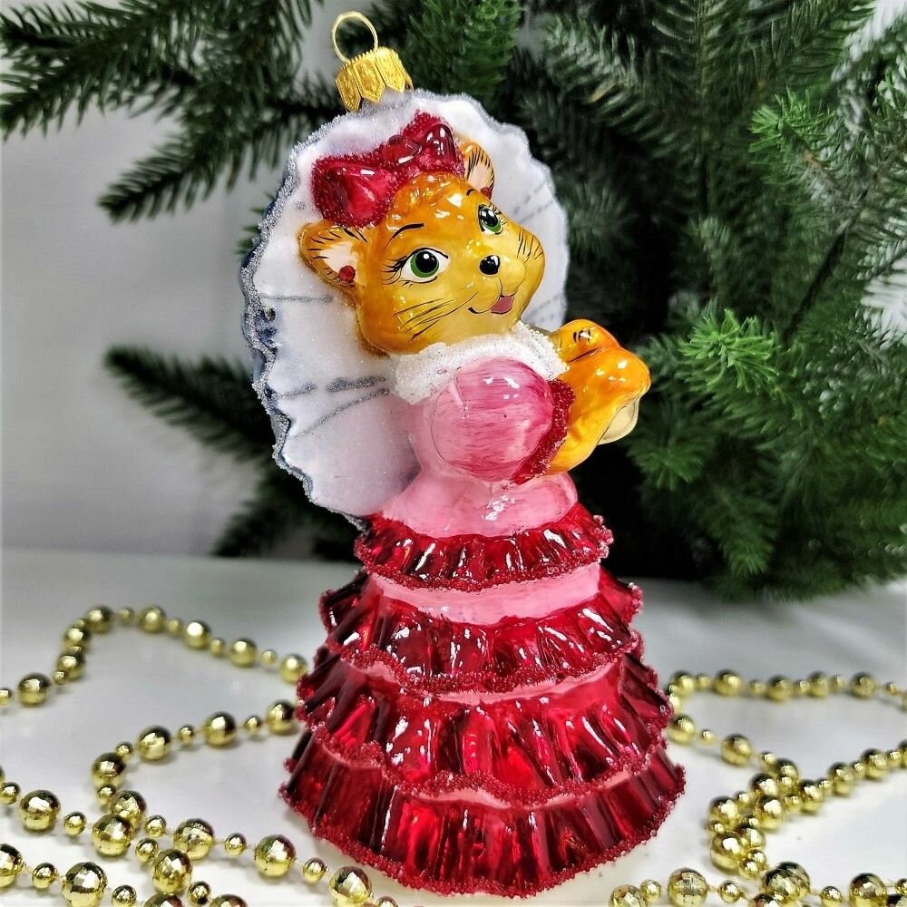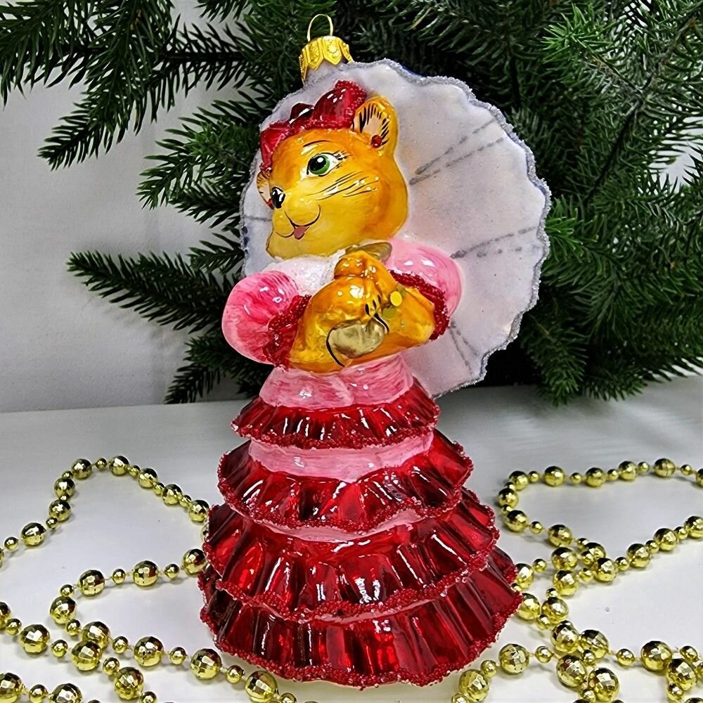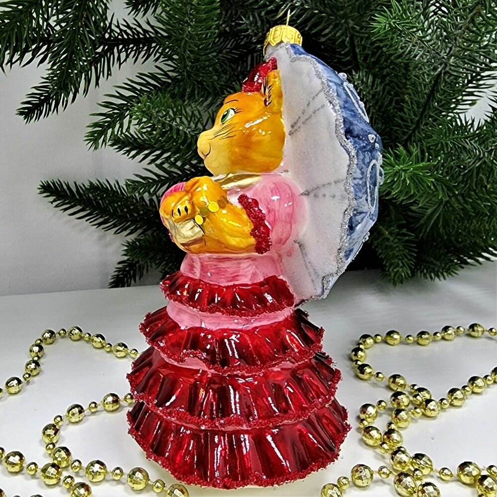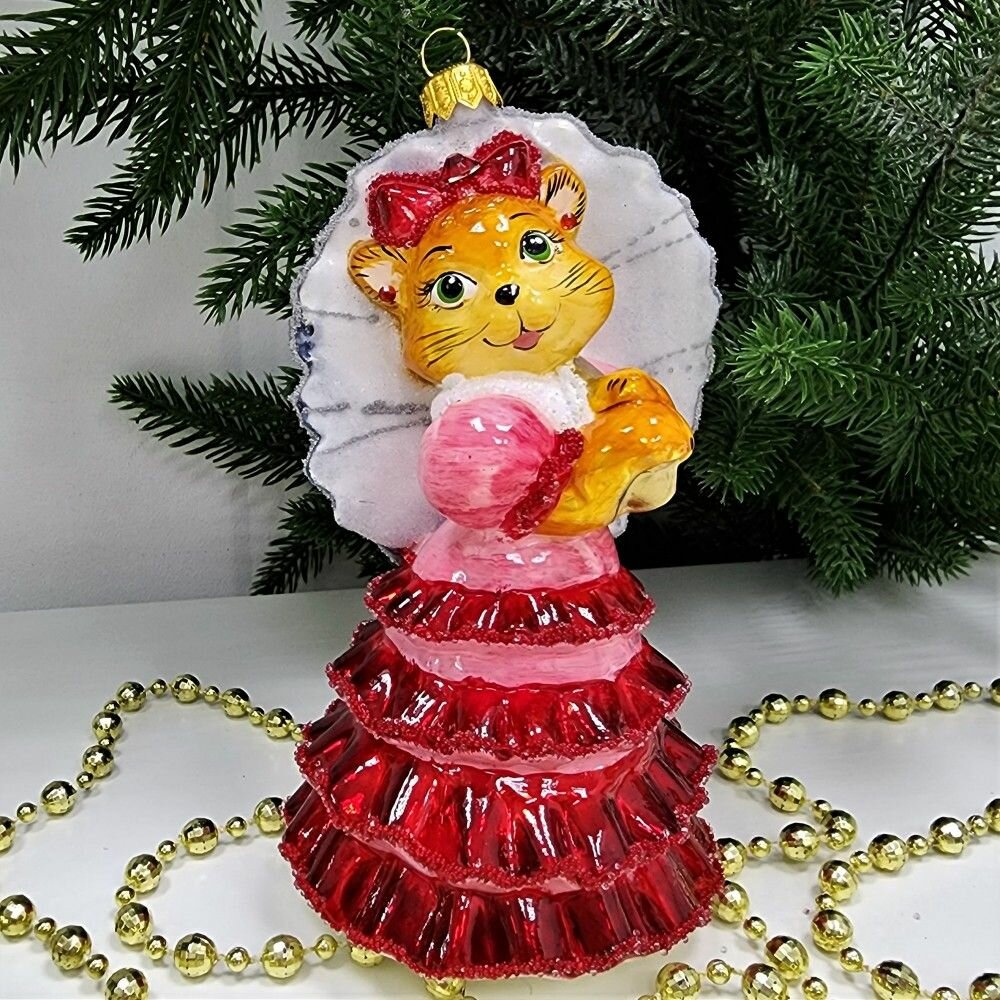 Купить Irena-Co елочная игрушка, стекло Кошка с зонтиком красная (Символ года 2023) (14х9х10см)