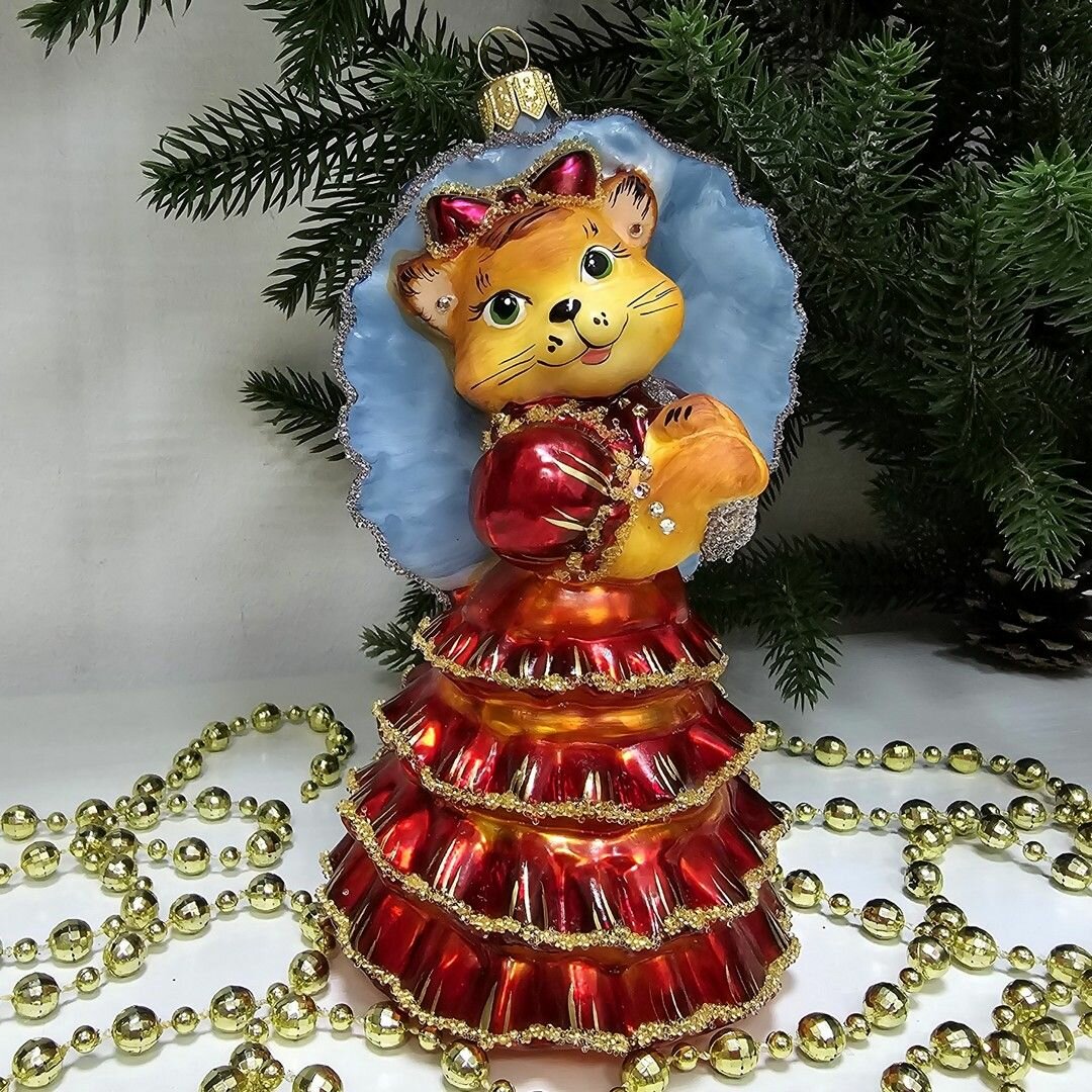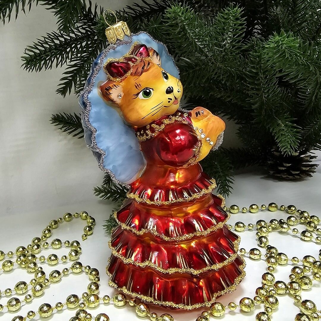Irena-Co елочная игрушка, стекло Киса Мэри Версаль (10х6х6см)