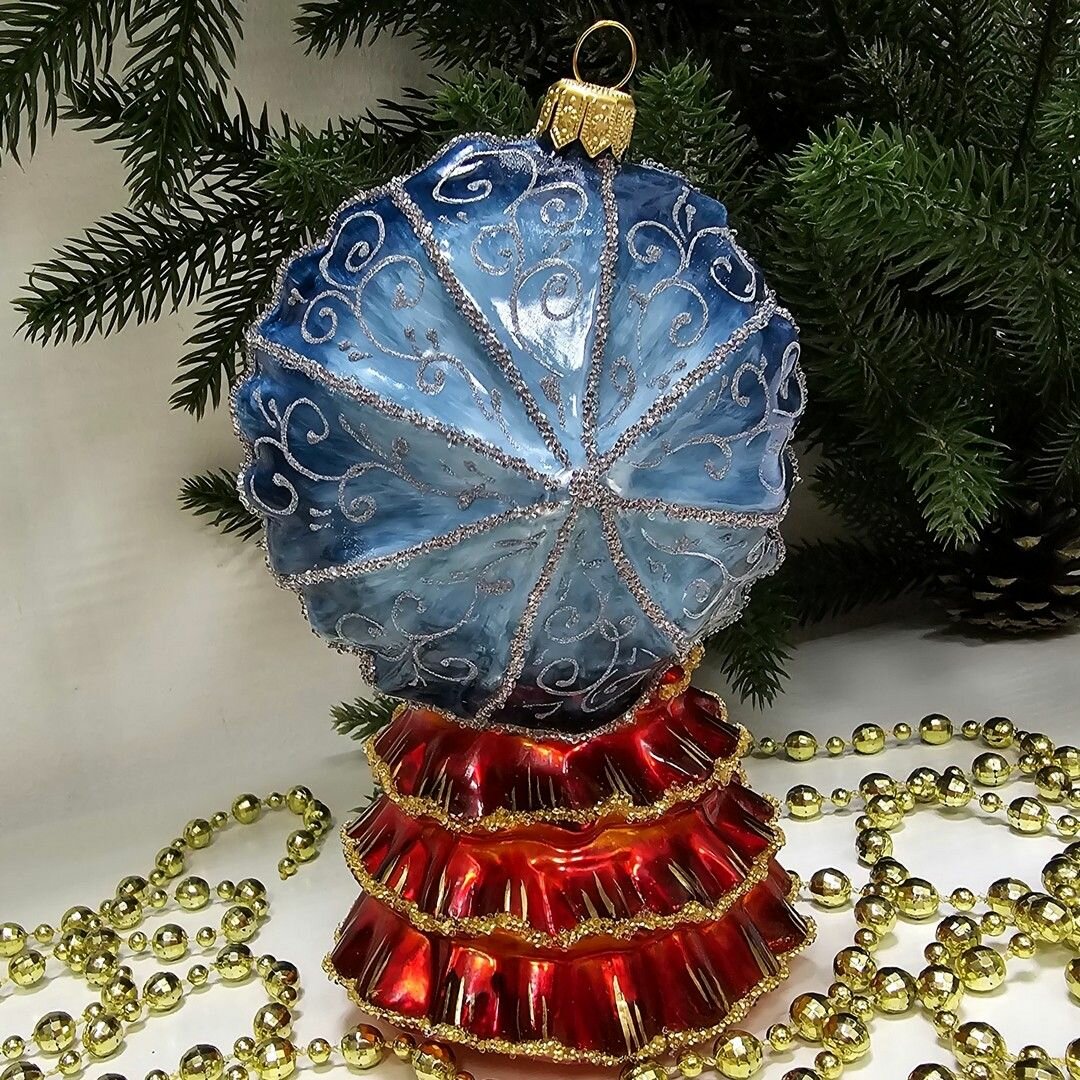 Irena-Co елочная игрушка, стекло Кошка с зонтиком синяя (Символ года 2023) (14х9х10см)