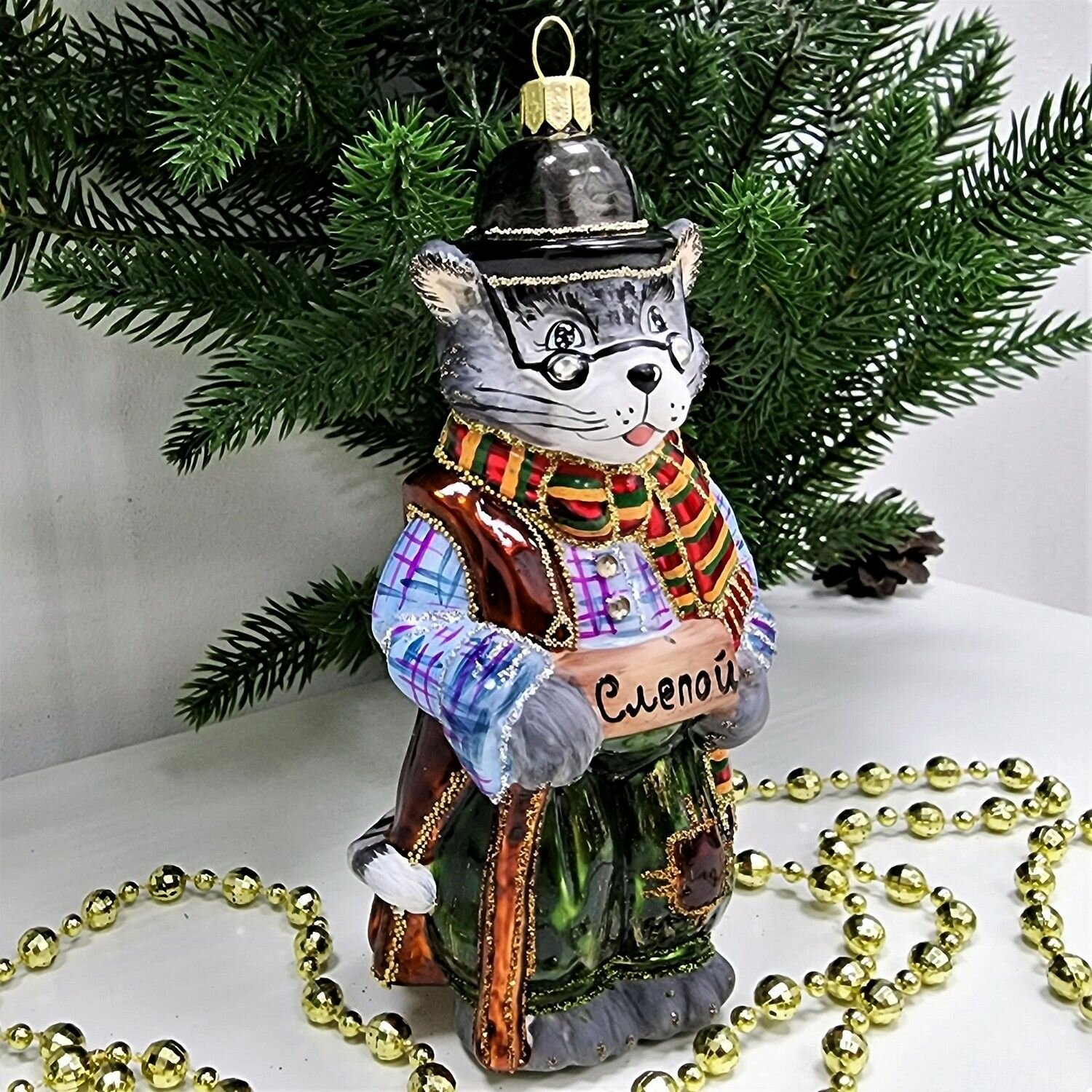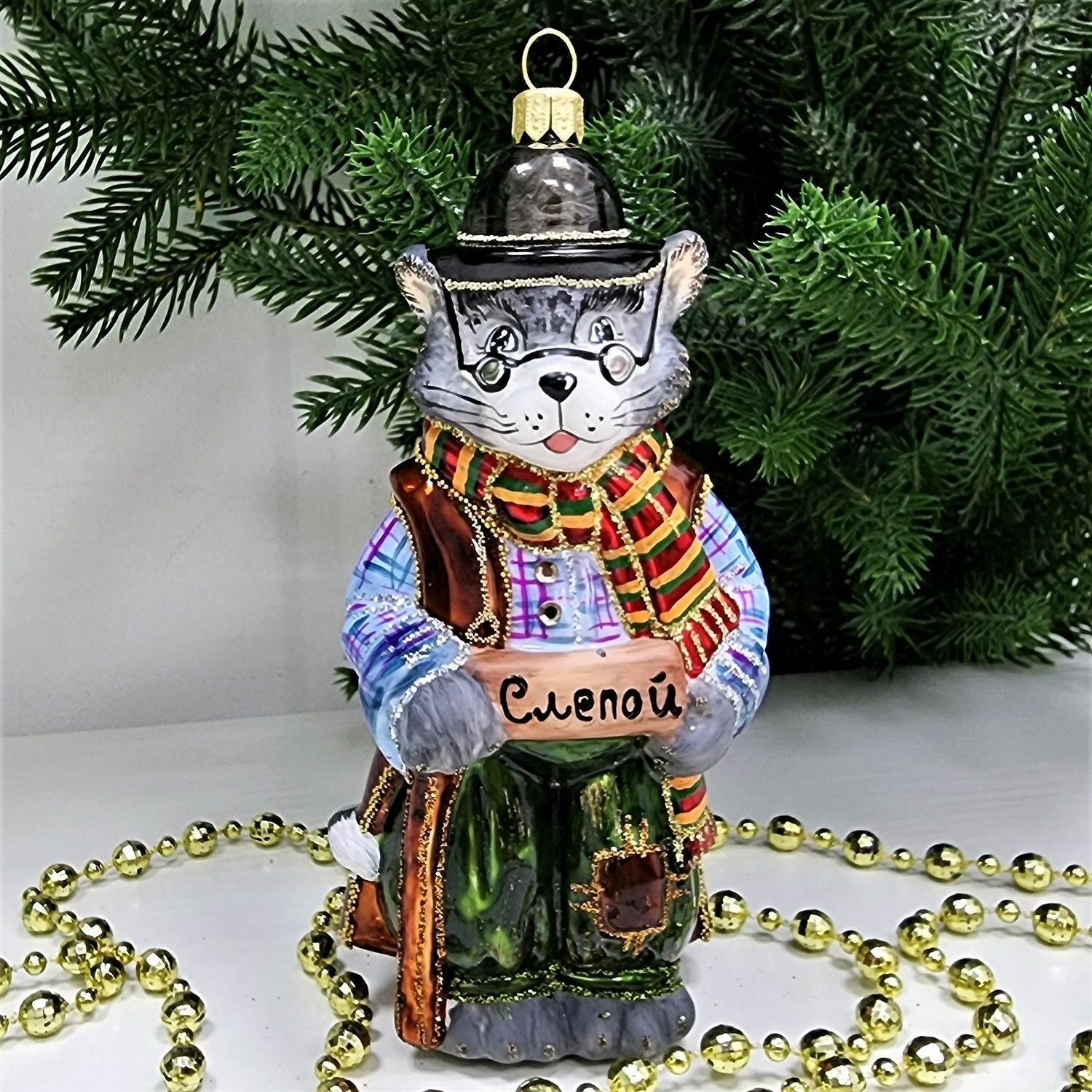 Irena-Co елочная игрушка, стекло Пан Кот (Символ года 2023) (13х8х7см)