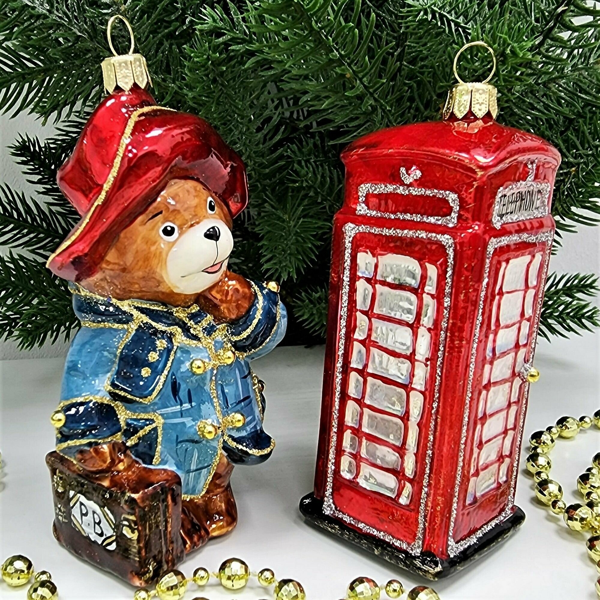 Купить Irena-Co Набор елочных игрушек, стекло Мишка Паддингтон - 11х6х5,5, Телефонная будка - 10х4,5х4,5