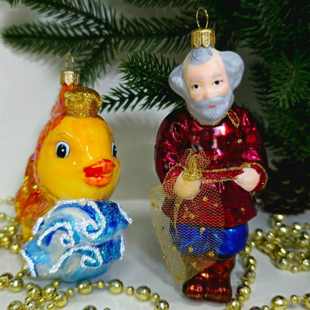 Irena-Co Набор елочных игрушек, стекло Емеля - 14,5х10,5х6,5, Щука - 10,5х5,5х5