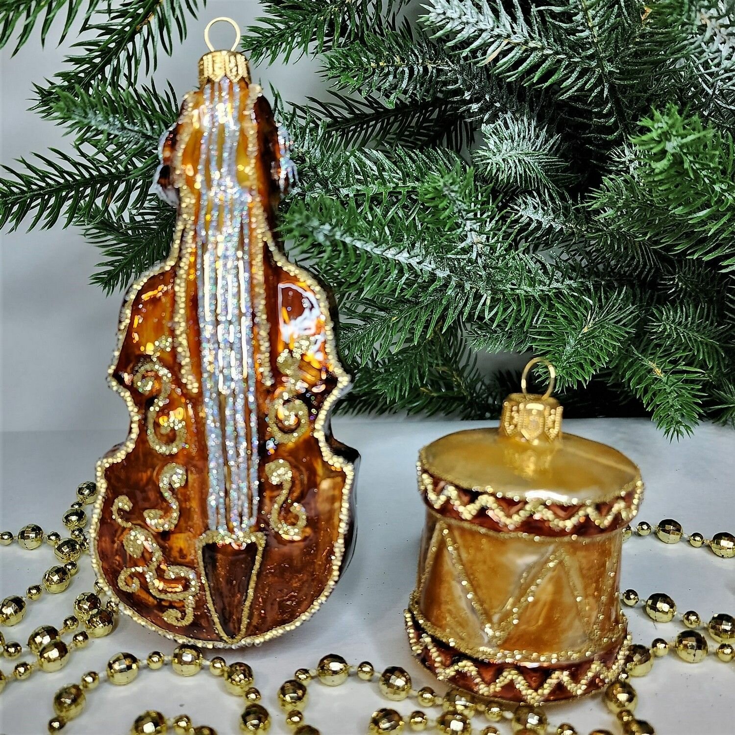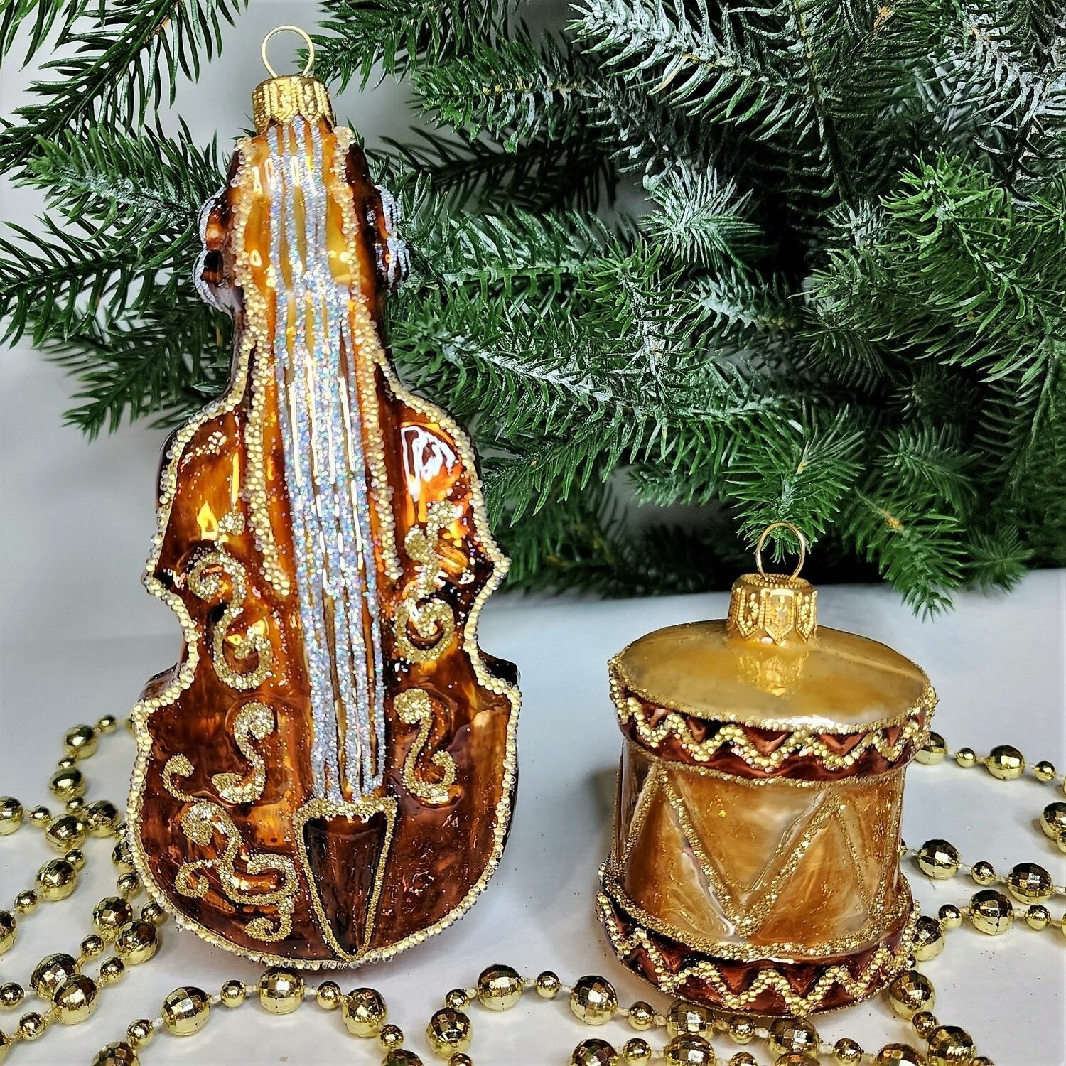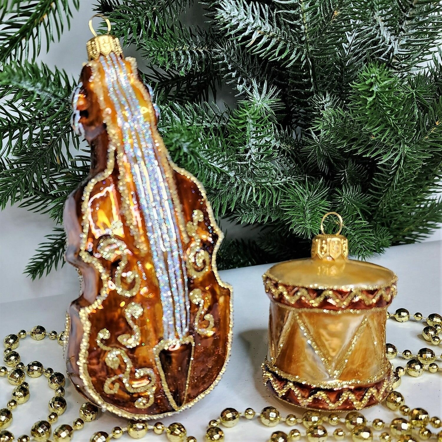 Купить Irena-Co Набор елочных игрушек, стекло Контрабас - 13,5х6х3,5см, Барабан - 5,5х5х5см