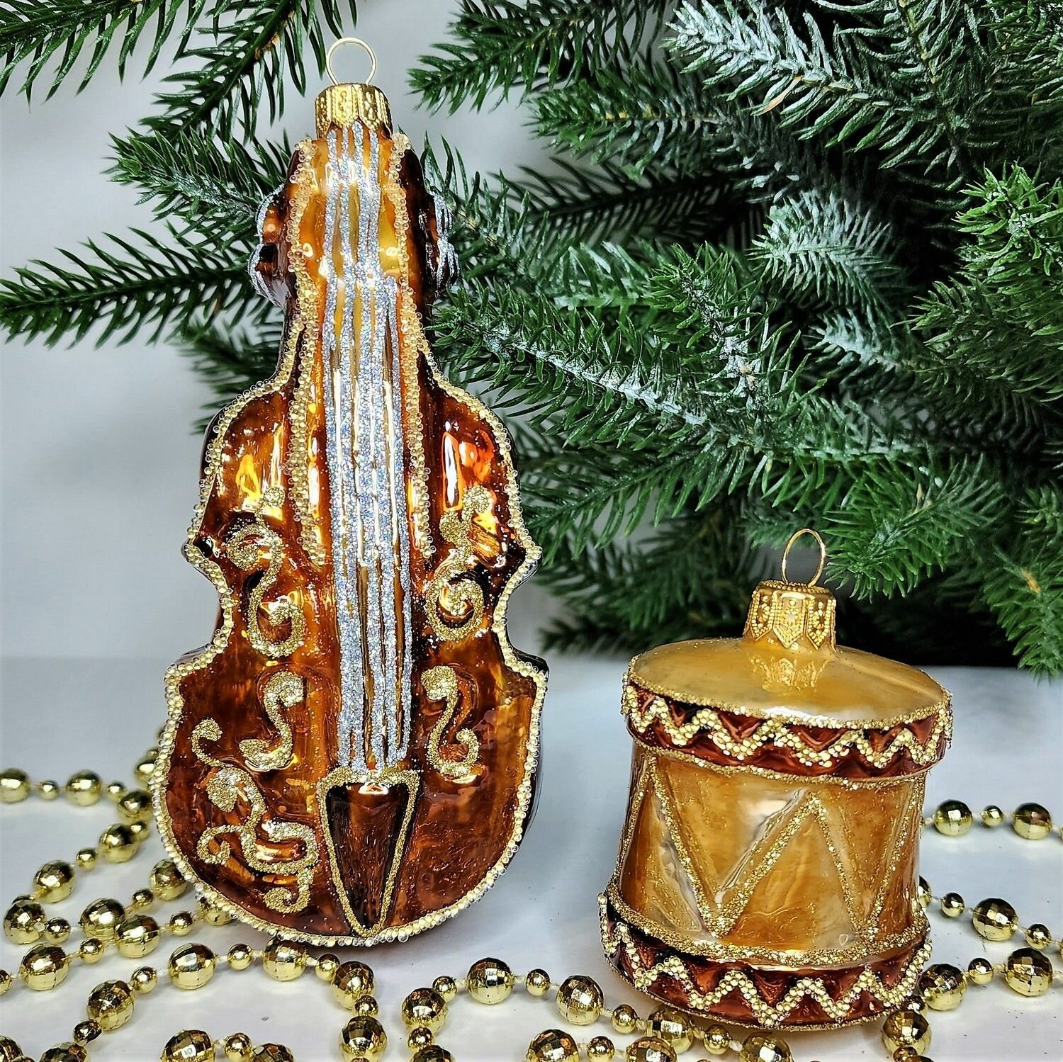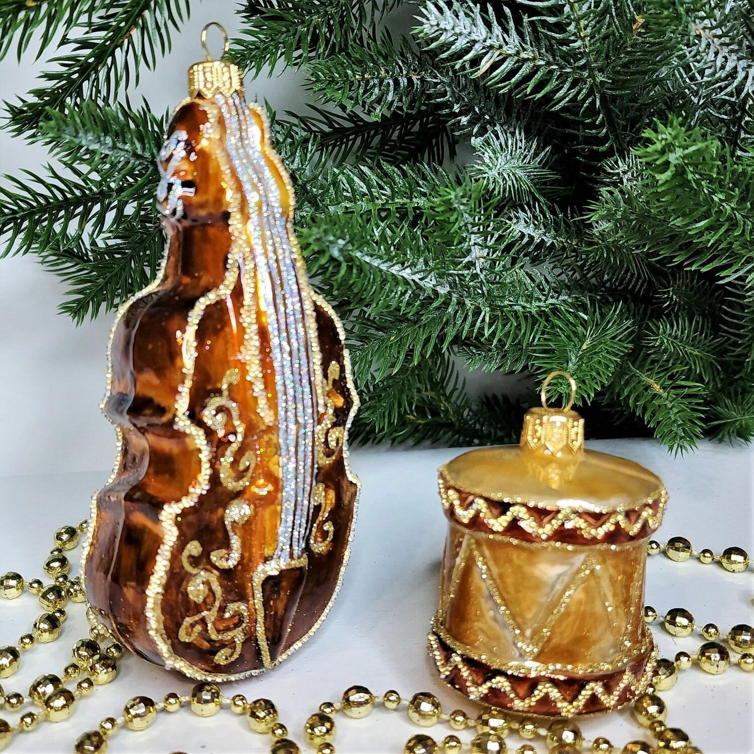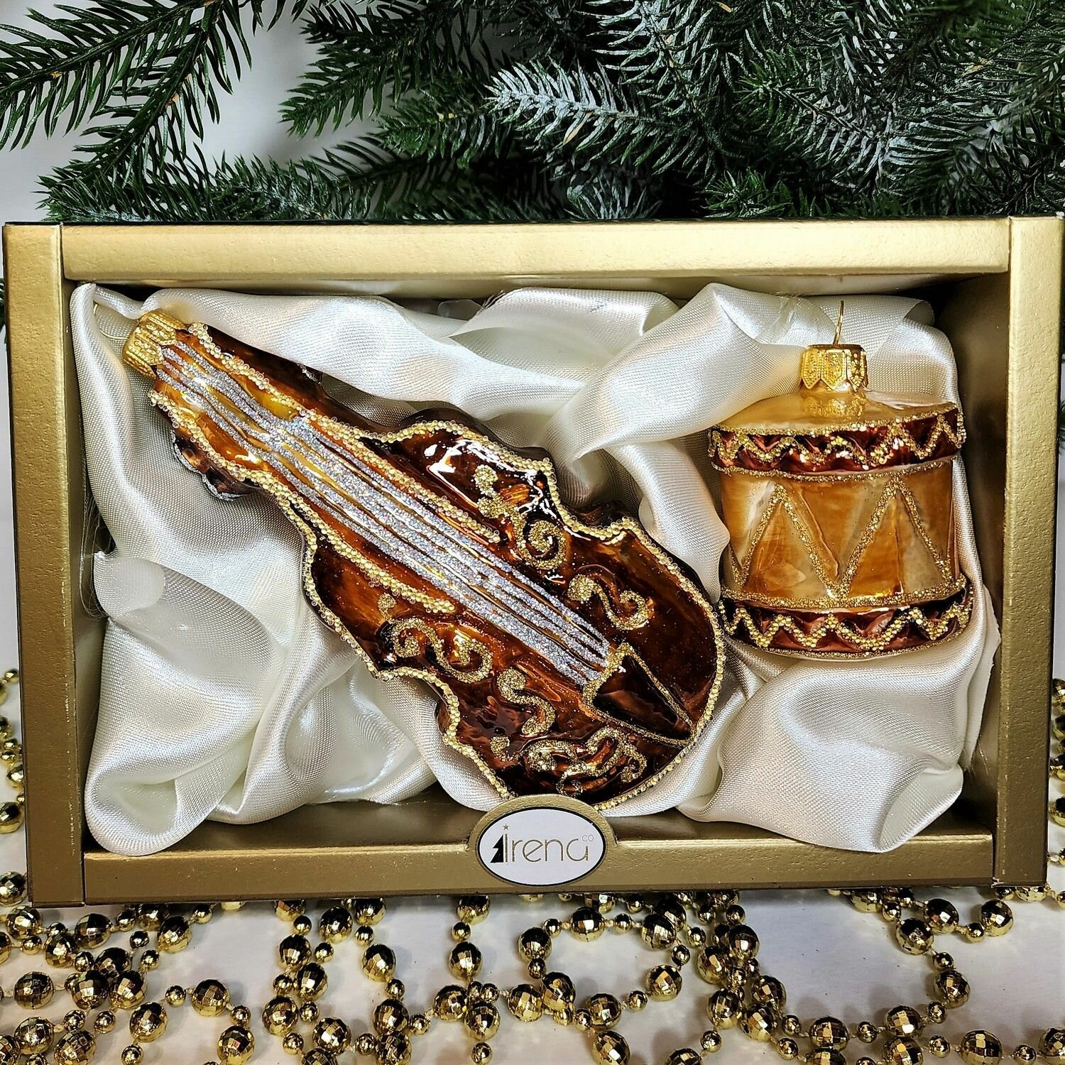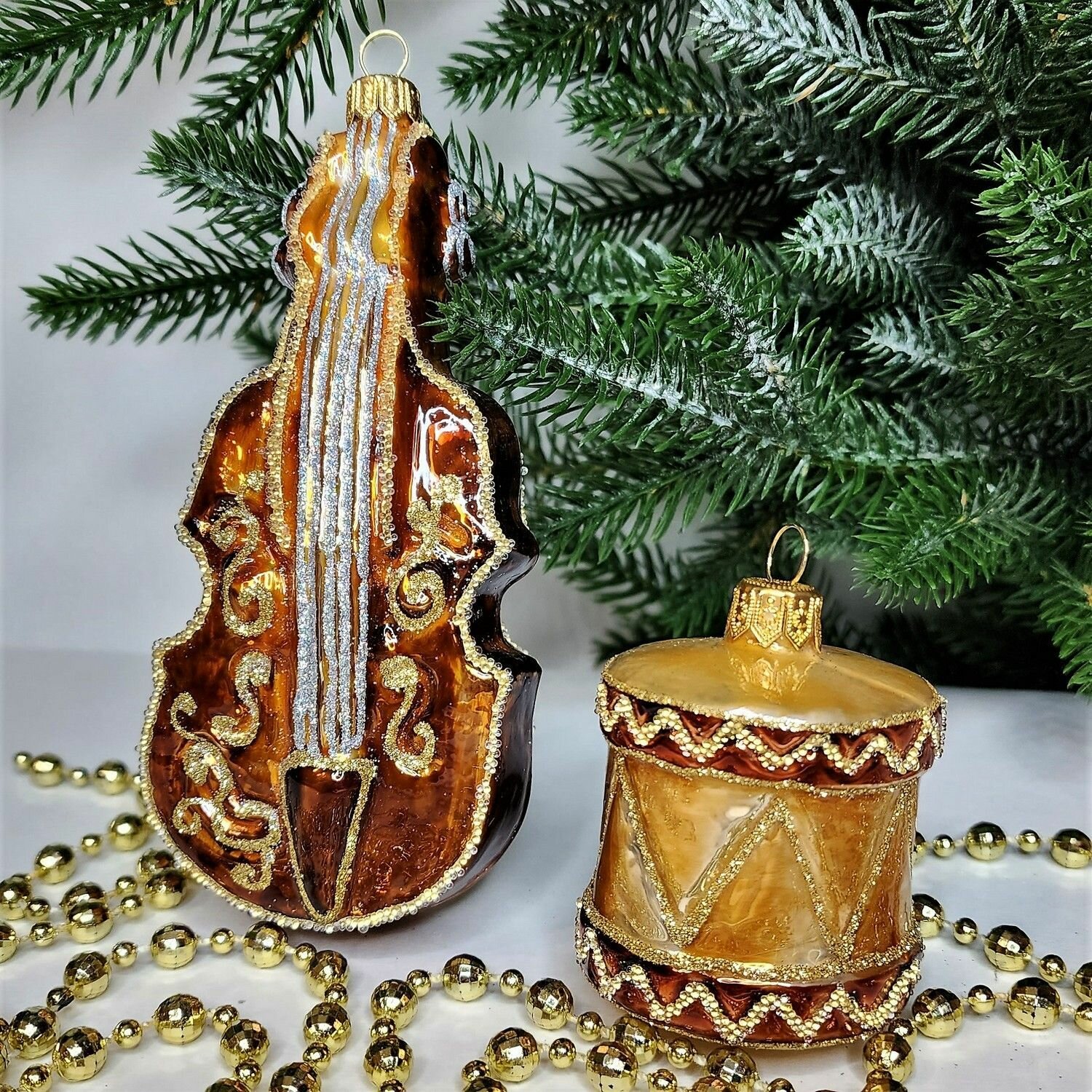 Купить Irena-Co Набор елочных игрушек, стекло Контрабас - 13,5х6х3,5см, Барабан - 5,5х5х5см