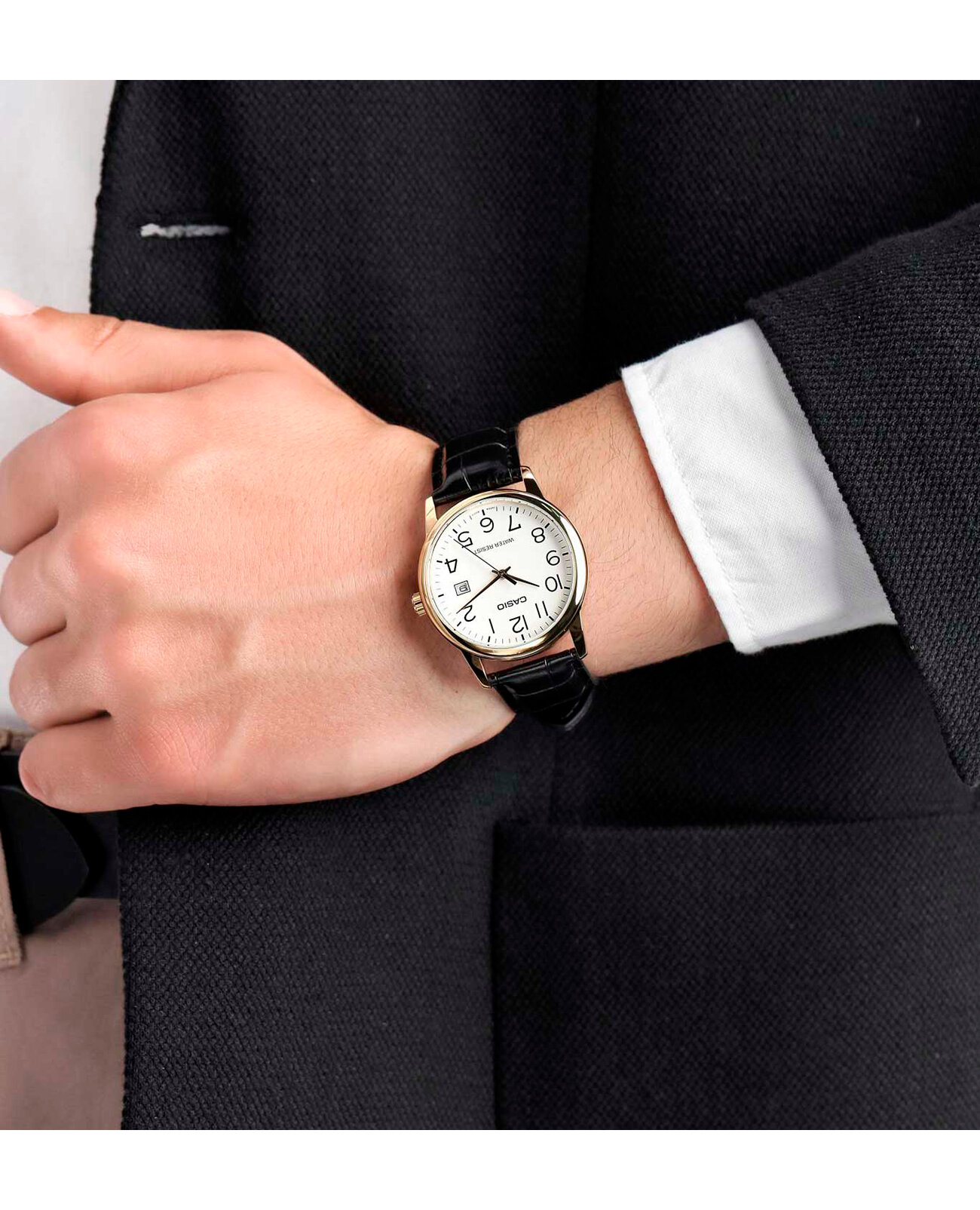 MTP-V002GL-7B2 Casio наручные часы кварцевые WR30 (3 атм) мужские золотой, черный отображение числа минеральное стекло