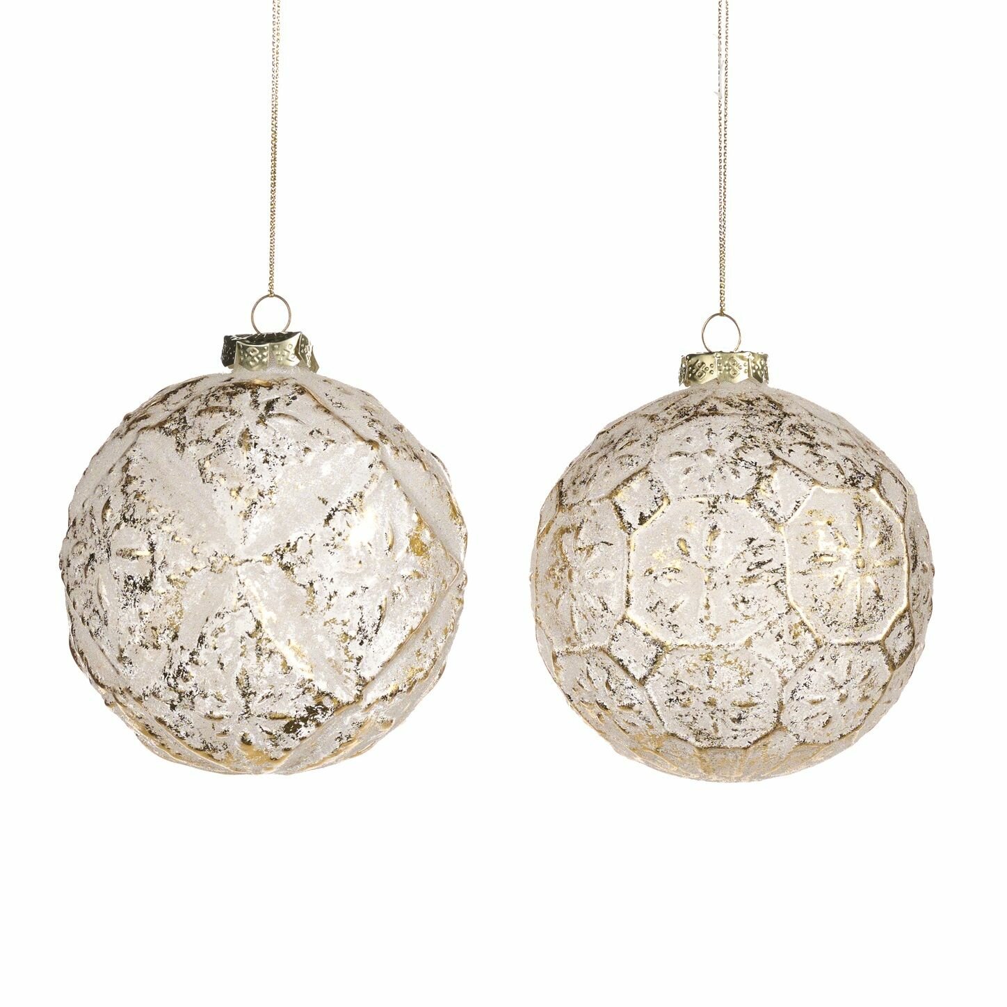 Купить Шарик Goodwill M&G стеклянный с узорами белый с золотом 10 см (набор 2шт)