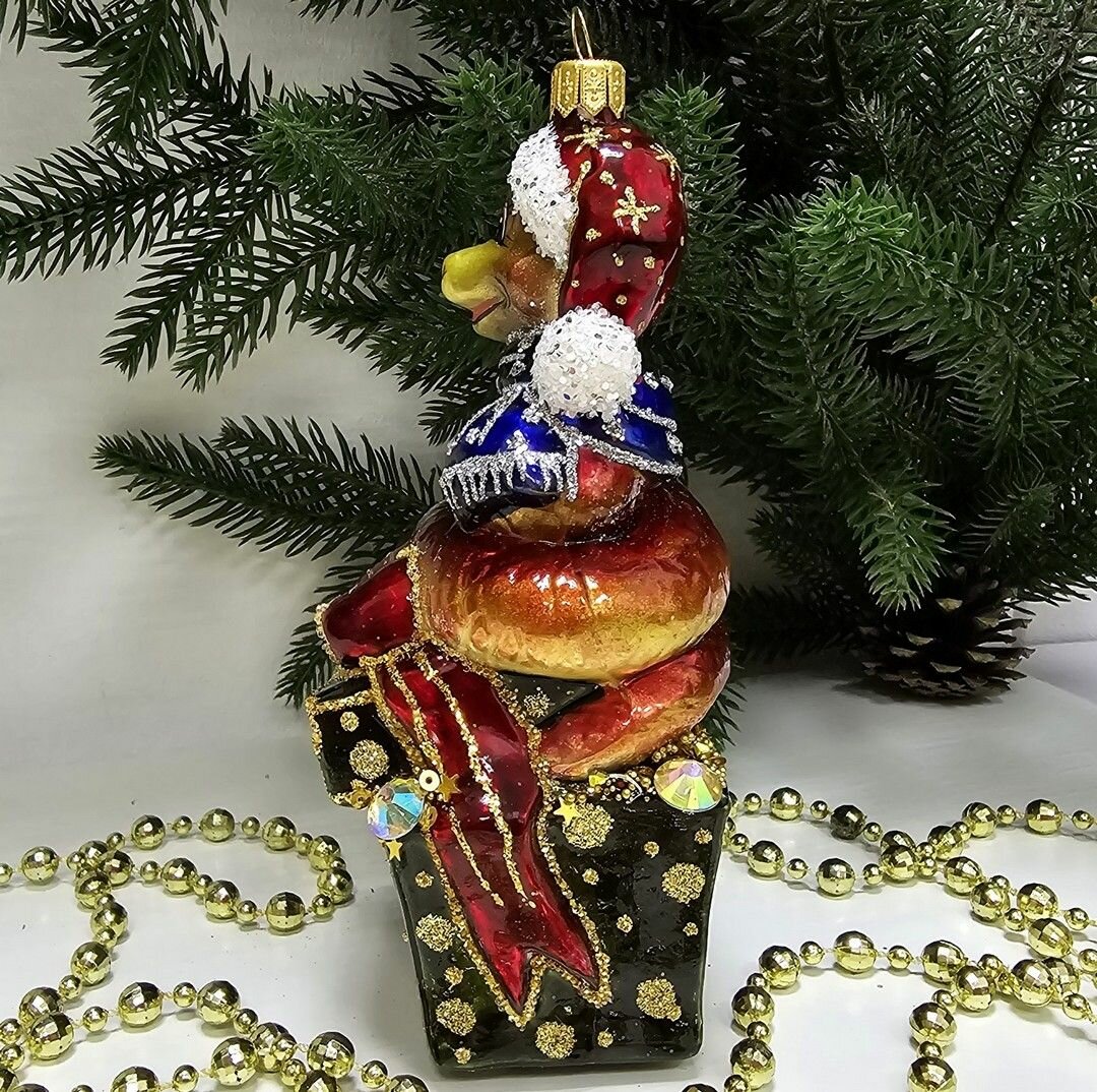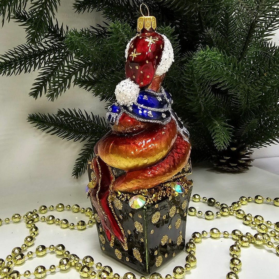 Irena-Co елочная игрушка, стекло Змея на елке с подарками (15х9х7см)