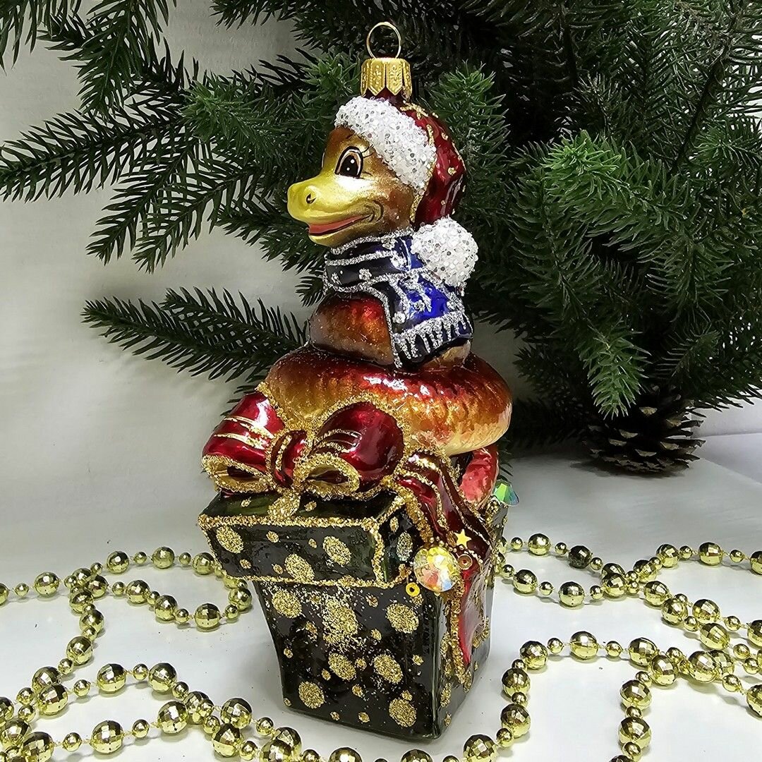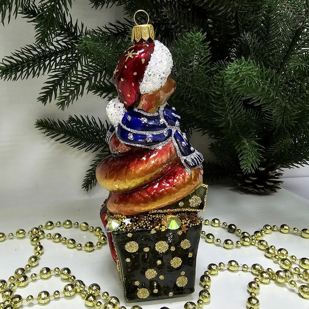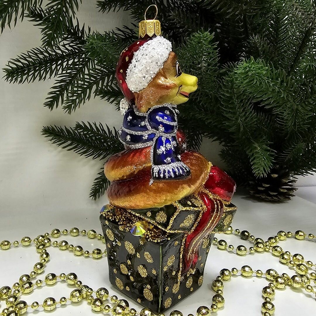 Купить Irena-Co елочная игрушка, стекло Змея на подарке (14,5х7,5х6,5см)