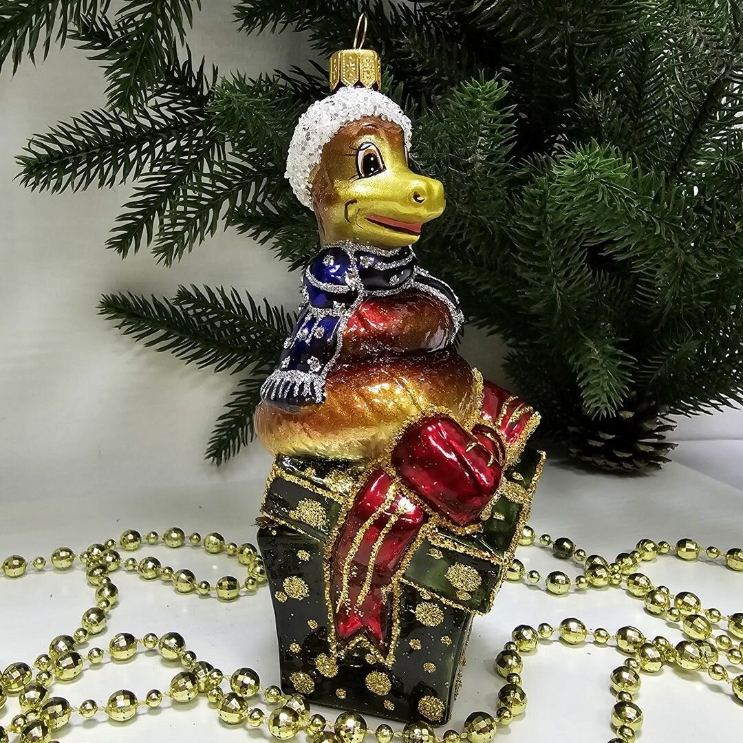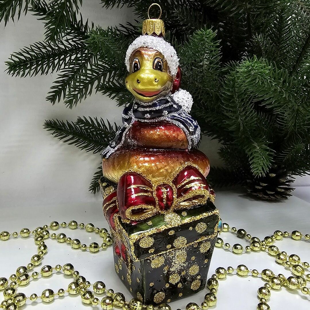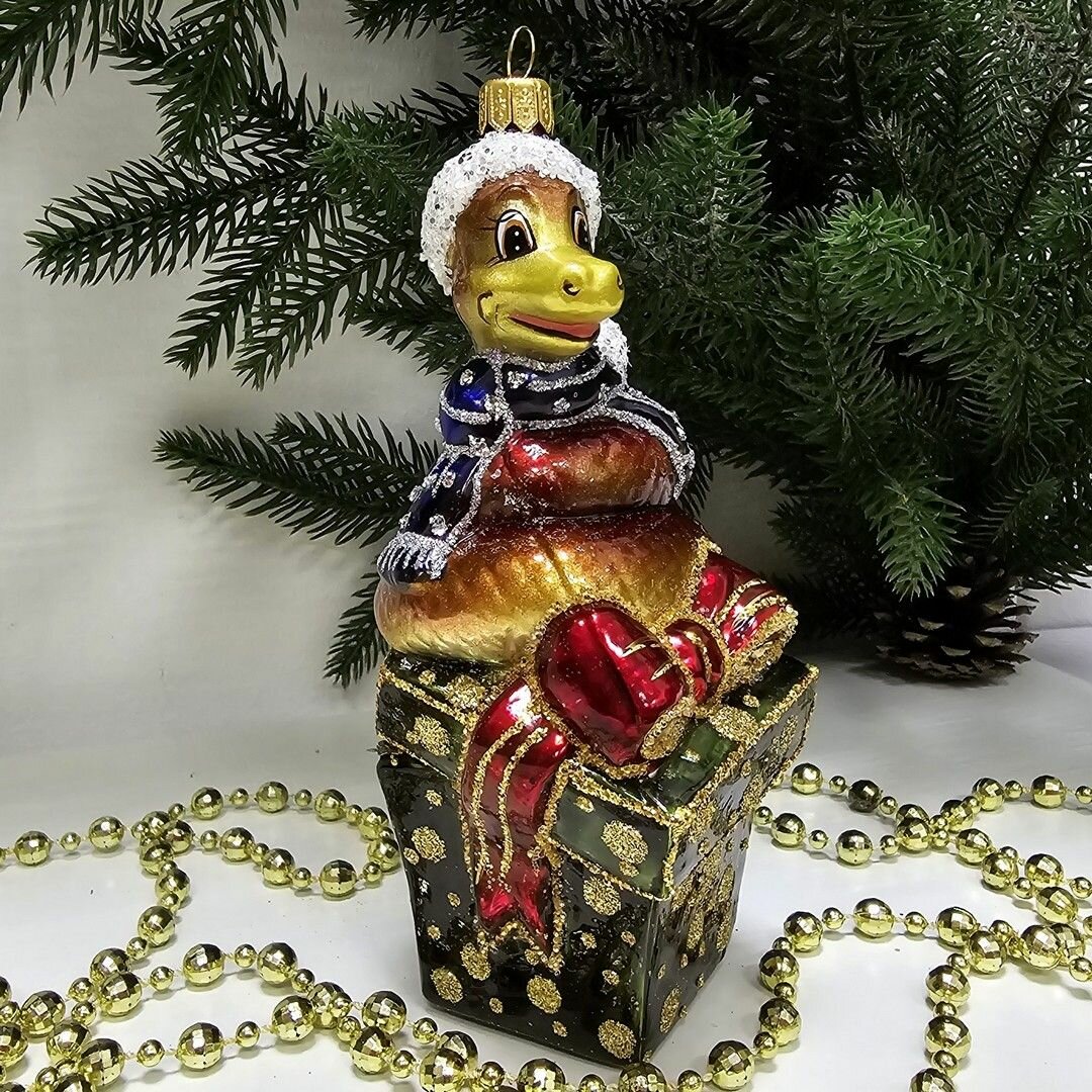 Купить Irena-Co елочная игрушка, стекло Змея на подарке (14,5х7,5х6,5см)