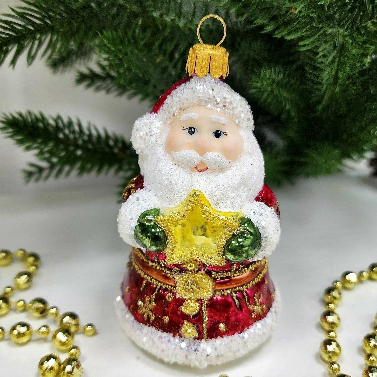 Irena-Co елочная игрушка, стекло Дед Мороз колокольчик (8,5х6х6см) интересное: