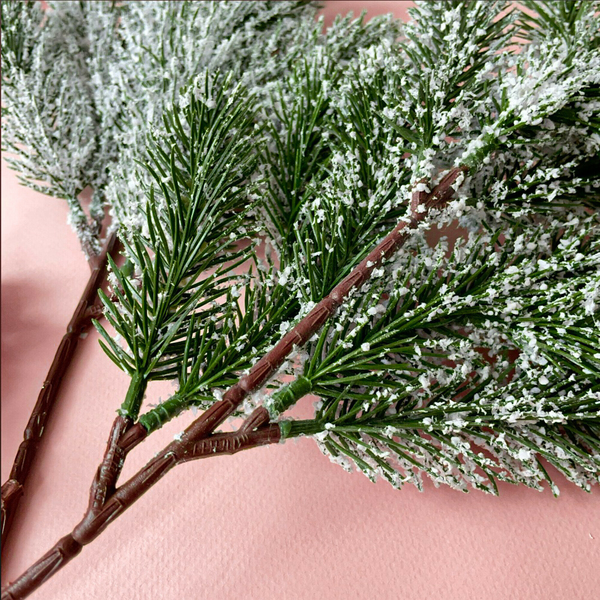 Еловые ветки заснеженные, искусственные, декор зимний, рождественский, набор 2 ветки, высота 45 см, 46 лапок