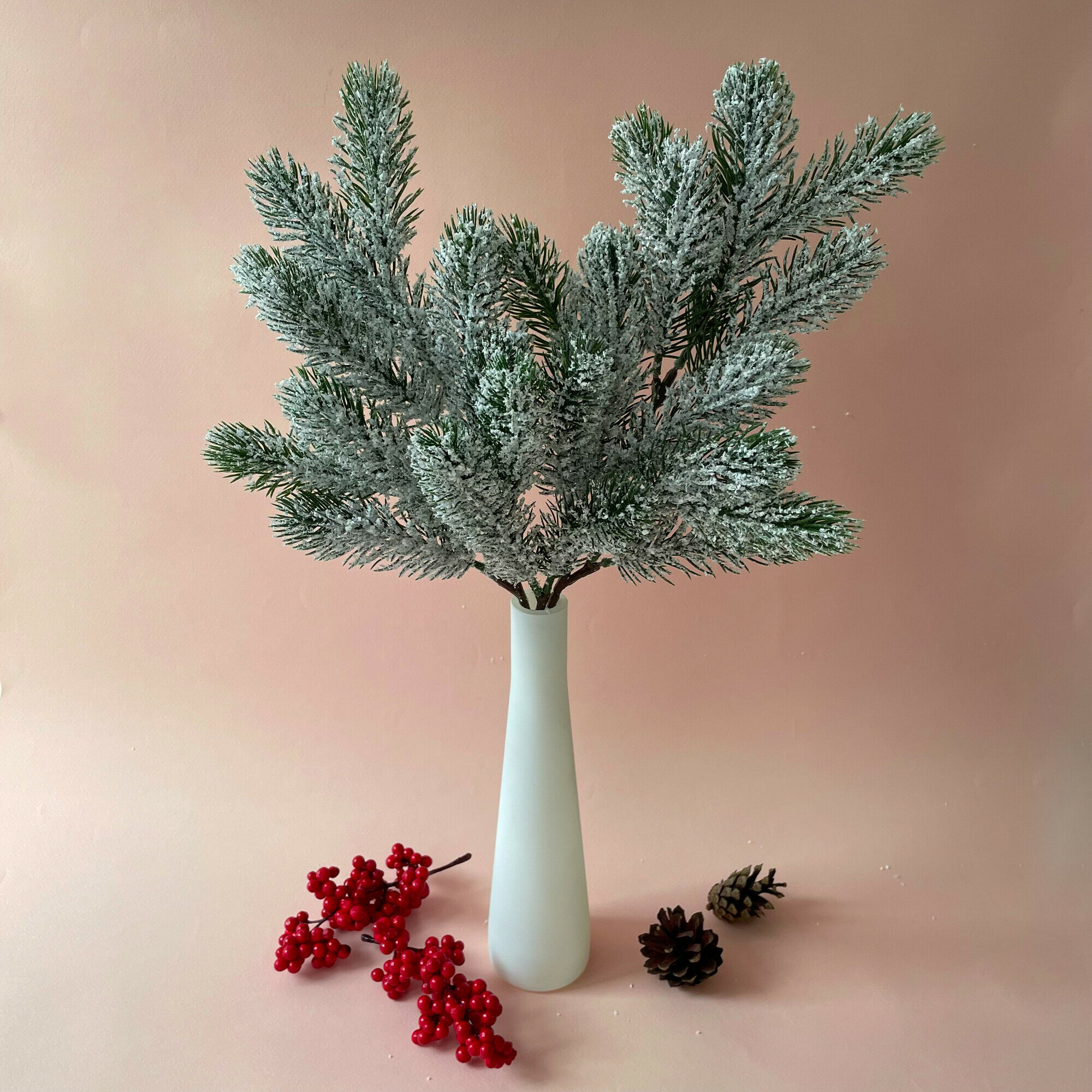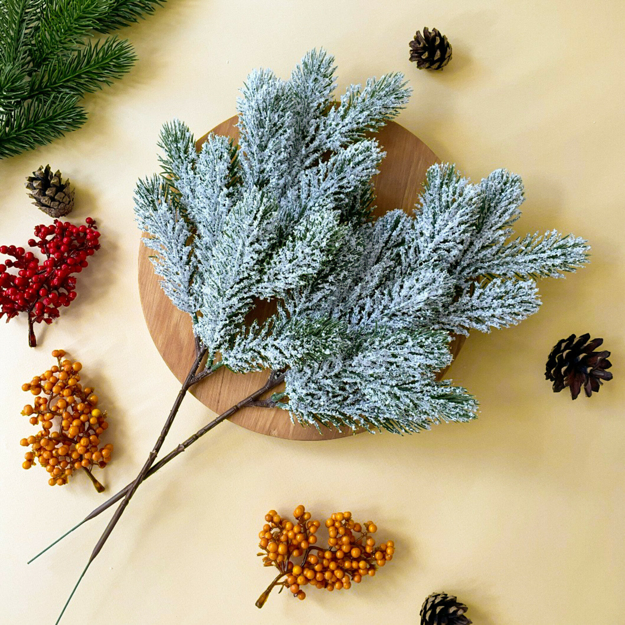 Еловая ветка с шишками искусственная, декор зимний, рождественский, 2 ветки, 47 см