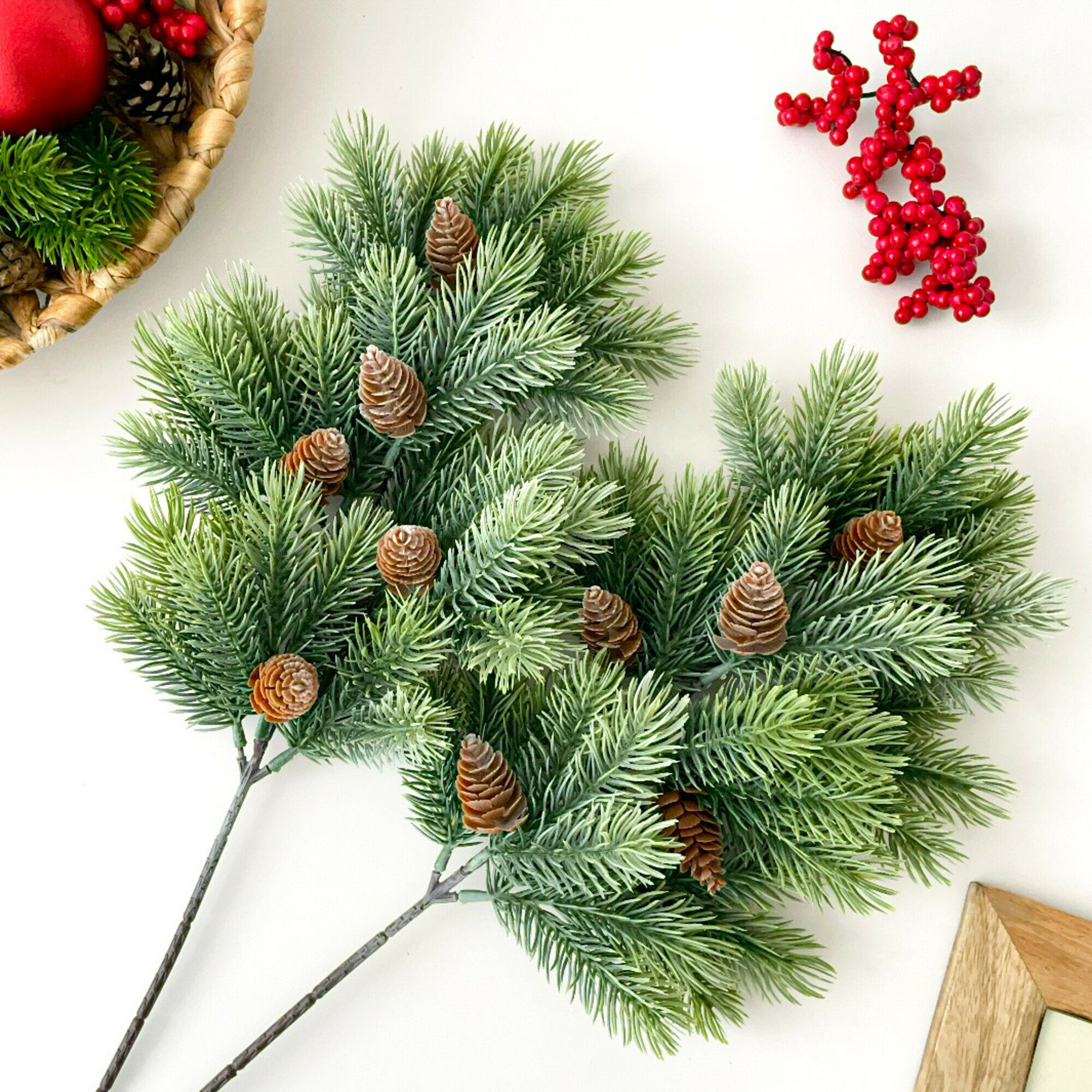 Еловая ветка с шишками искусственная, декор зимний, рождественский, 2 ветки, 47 см