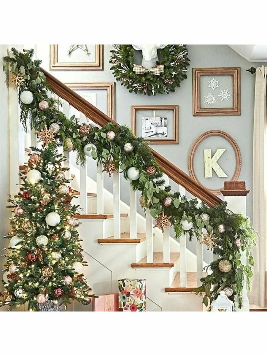 Лиана из еловых лапок (примерно 60 лапок), разборная, новогоднее украшение, цвет хвойно-зеленый, длина 150 см. интересное: