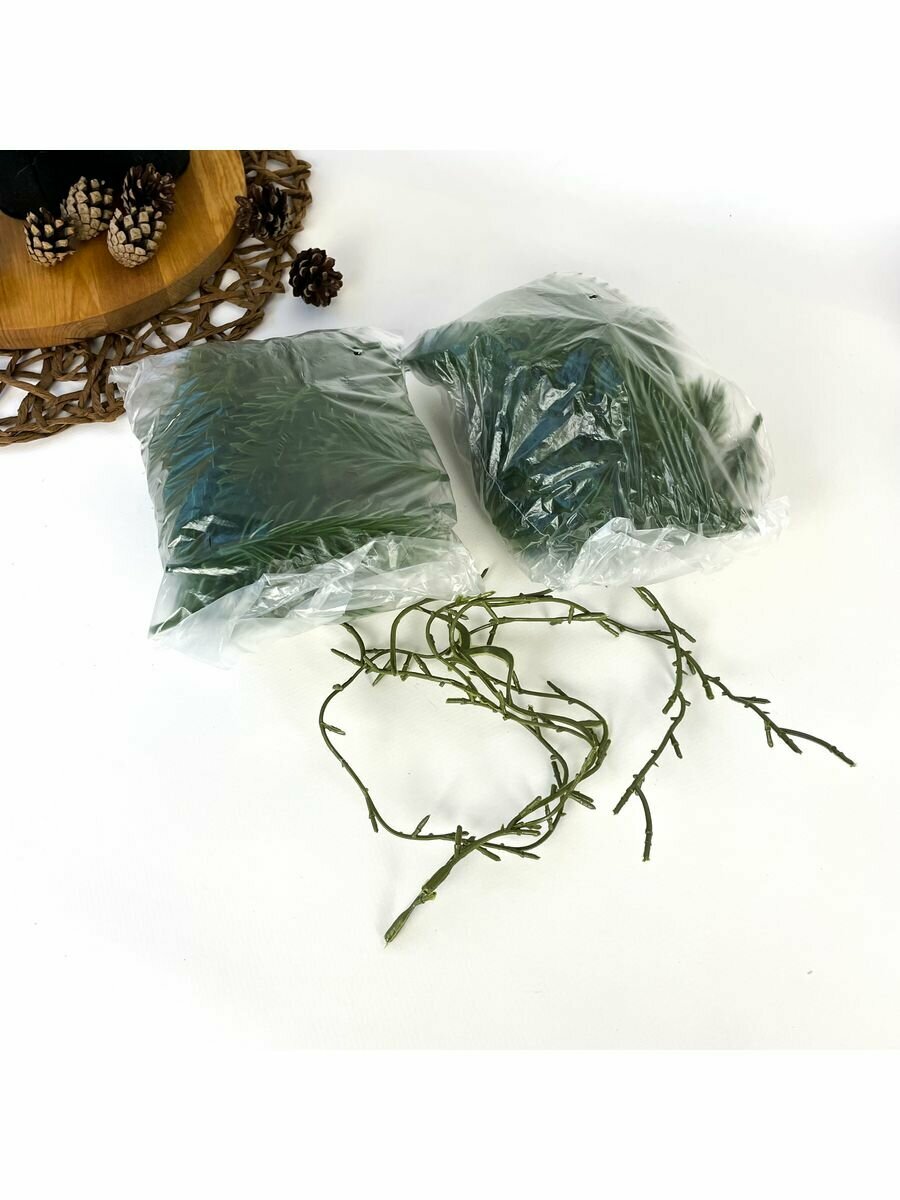 Лиана из еловых лапок (примерно 120 лапок), разборная, новогоднее украшение, цвет хвойно-зеленый, 3 метра (2 штуки по 150 см)