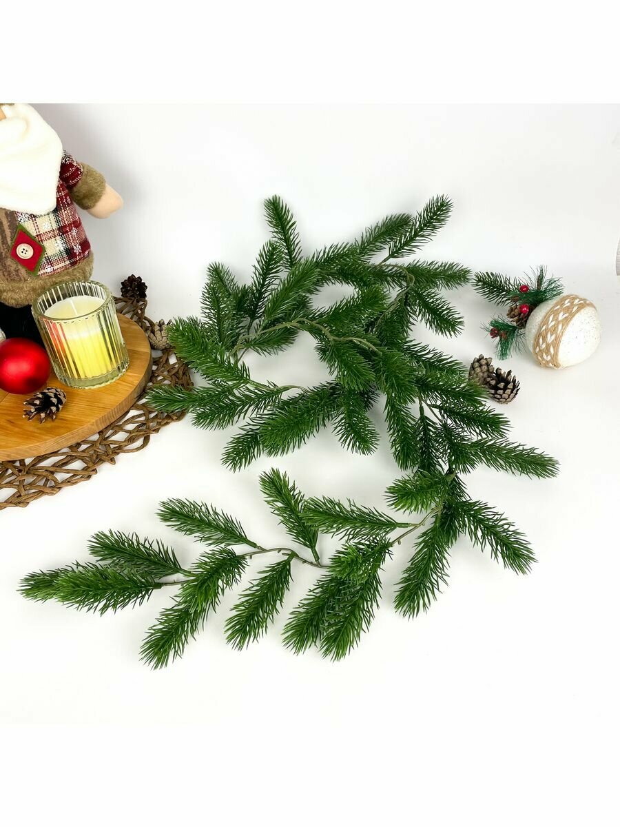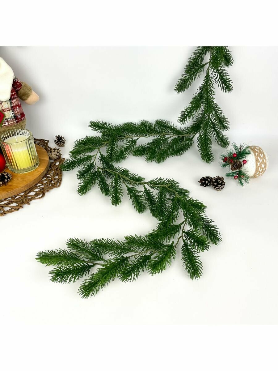 Купить Лиана из еловых лапок (примерно 60 лапок), разборная, новогоднее украшение, цвет хвойно-зеленый, длина 150 см.