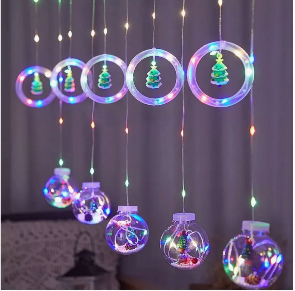 Гирлянда штора новогодние игрушки 3 метра декор и украшение / Гирлянда интерьерная 5 шаров и 5 колец