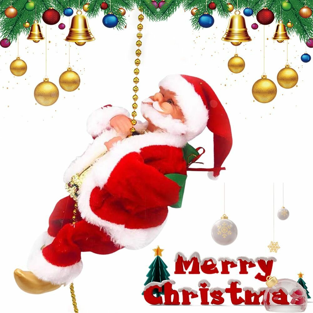 Купить Музыкальный Дед Мороз лезет по веревке /Санта-Клаус-альпинист/ игрушка к Новому Году