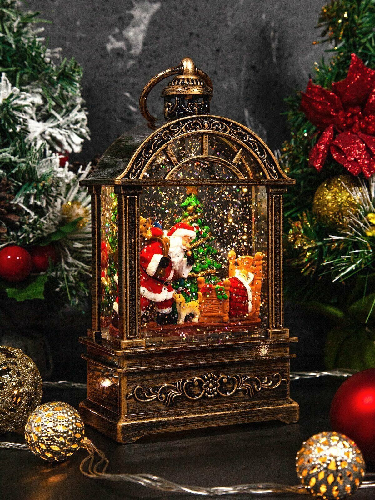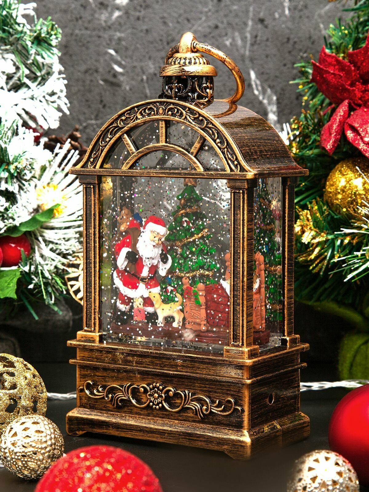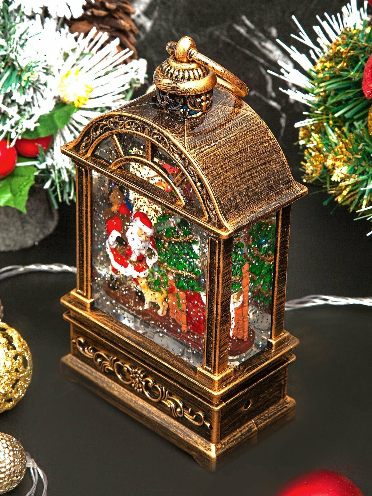 Купить Новогодний фонарь и светильник "Волшебная терраса" с метелью и новогодней музыкой