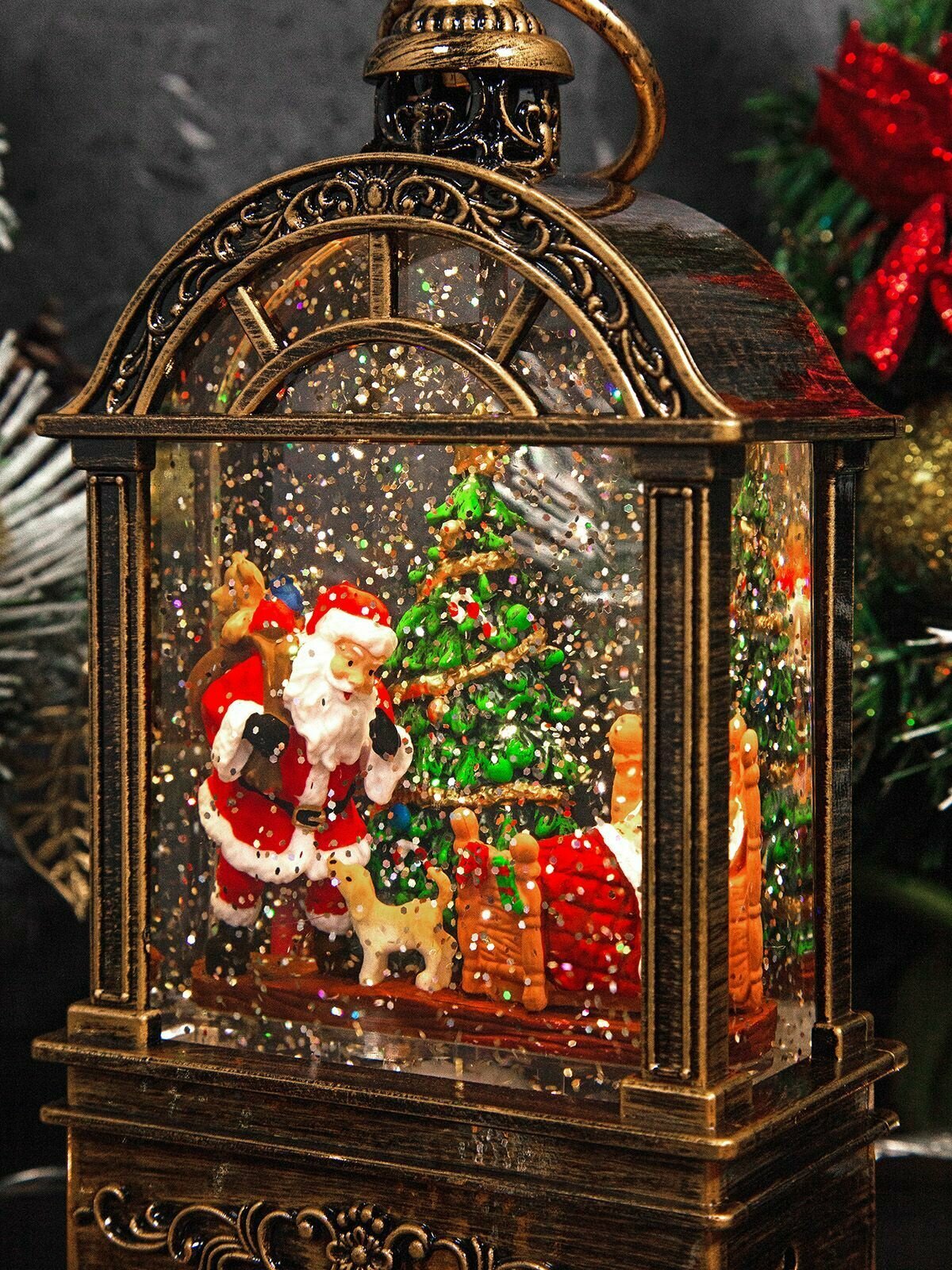 Новогодний фонарь и светильник "Рождество" с метелью и новогодней музыкой