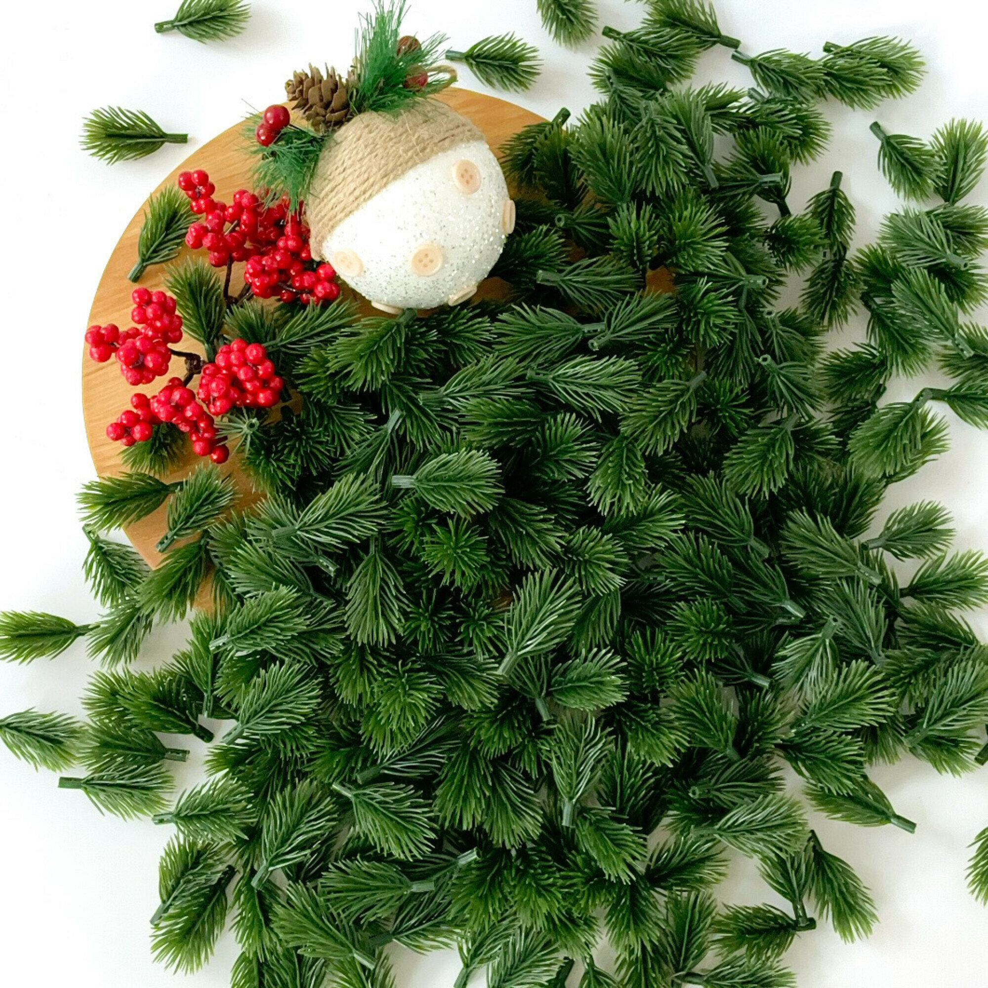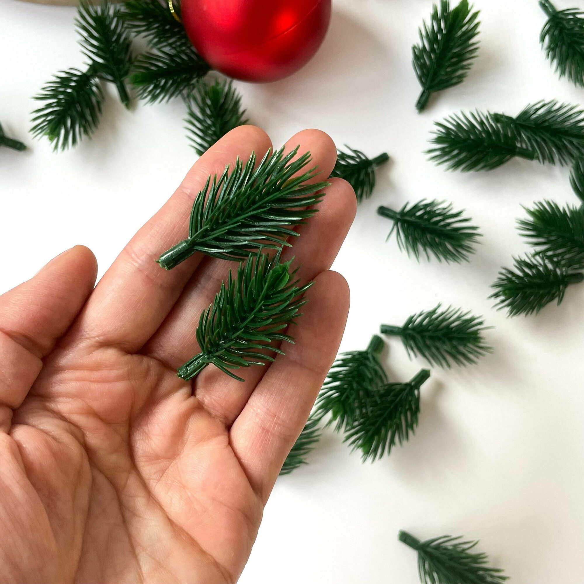Еловые лапки искусственные для декора, Зеленые, для новогодних поделок, 5 см, 100 штук